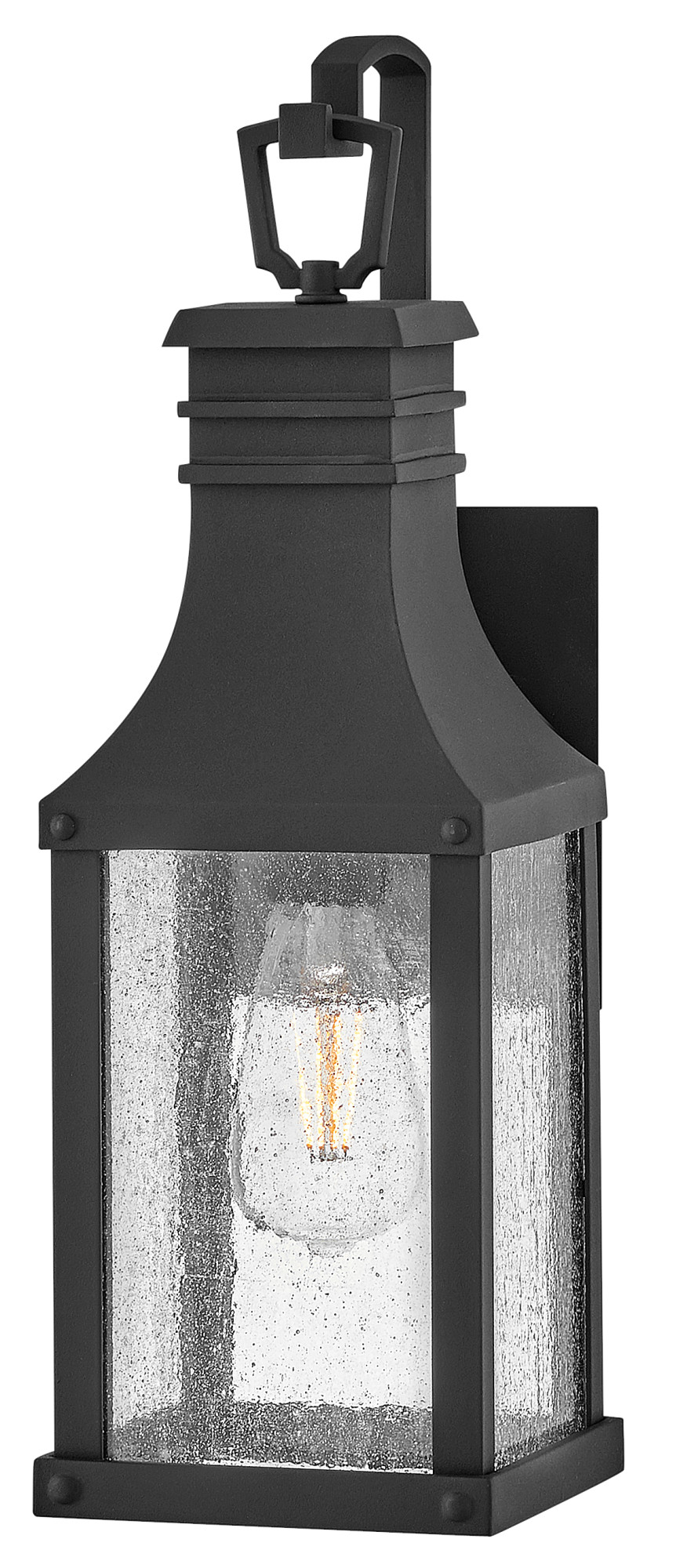 Breathing inspiration from an English pocket lantern, Beacon Hill achieves a timeless aesthetic. Part of the Heritage Series, this traditional styled wall and post lantern collection feature a new, striking Blackened Copper aluminum frame. Its heavily seeded glass pairs harmoniously with off-white candle sleeves, paying homage to its true old-world charm.