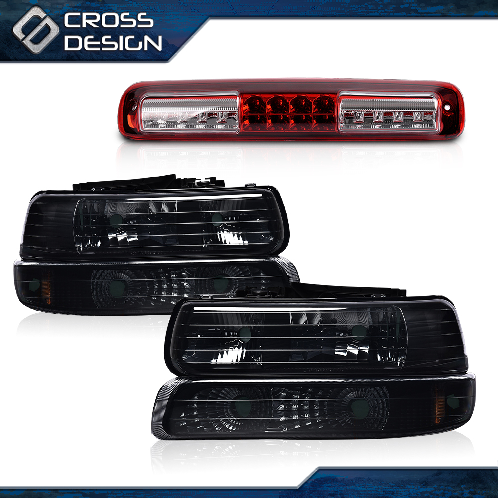 Smoked Headlight & Bumper& LED 3RD Brake Cargo Light Fit For 99+ Chevy Silverado