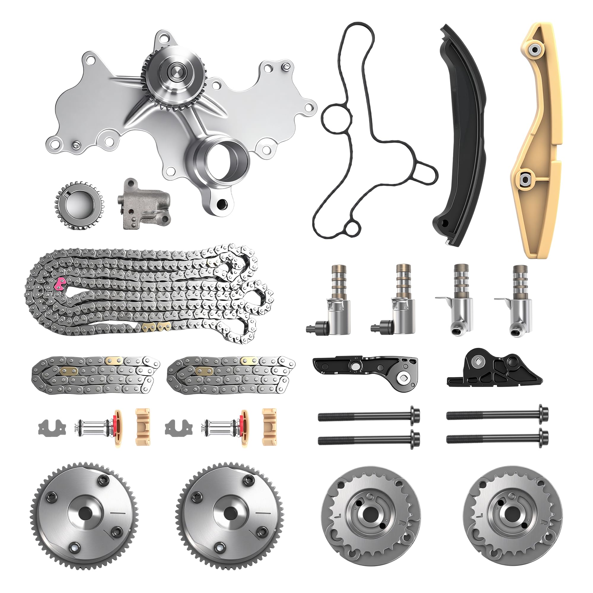 9-0738SAVVT3 Engine Timing Chain Kit with 4 PCS VVT Sprockets&VVT Solenoids,For Ford F-150 11-13, For Ford Transit-150/Transit-250/Transit-350 V6 3.5L 2015-2016#AT4Z6256B, AT4Z6C525D, AT4Z6268B