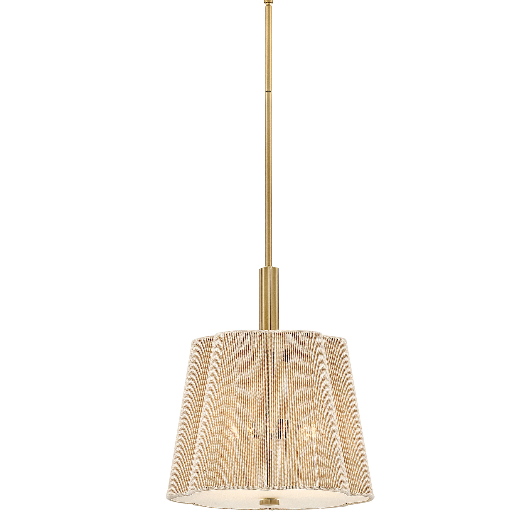 Item DescriptionA chic yet casual décor statement infused with natural texture, Sasha’s subtly tapered, scalloped shade is hand-wrapped in natural-fiber cord, imparting an unexpected element of sheer softness to your décor. A clover-shaped Etched glass diffuser glows with welcoming illumination, secured by a complementing clover finial and a finished frame.