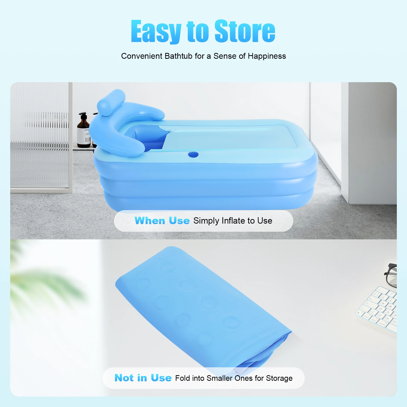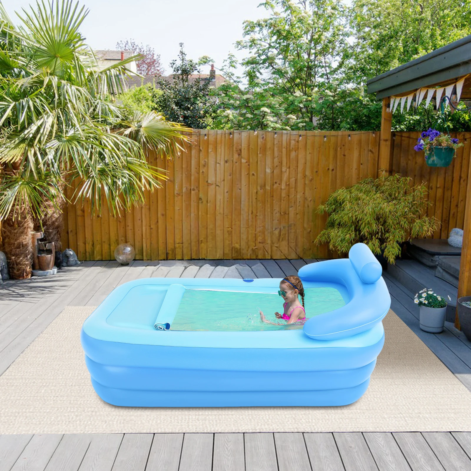 Large Inflatable Bathtub 160*84*64cm, Portable Foldable Spa Tub for Adults Kids,Freestanding PVC Blow Up Bath Tub Pool w/Cushion