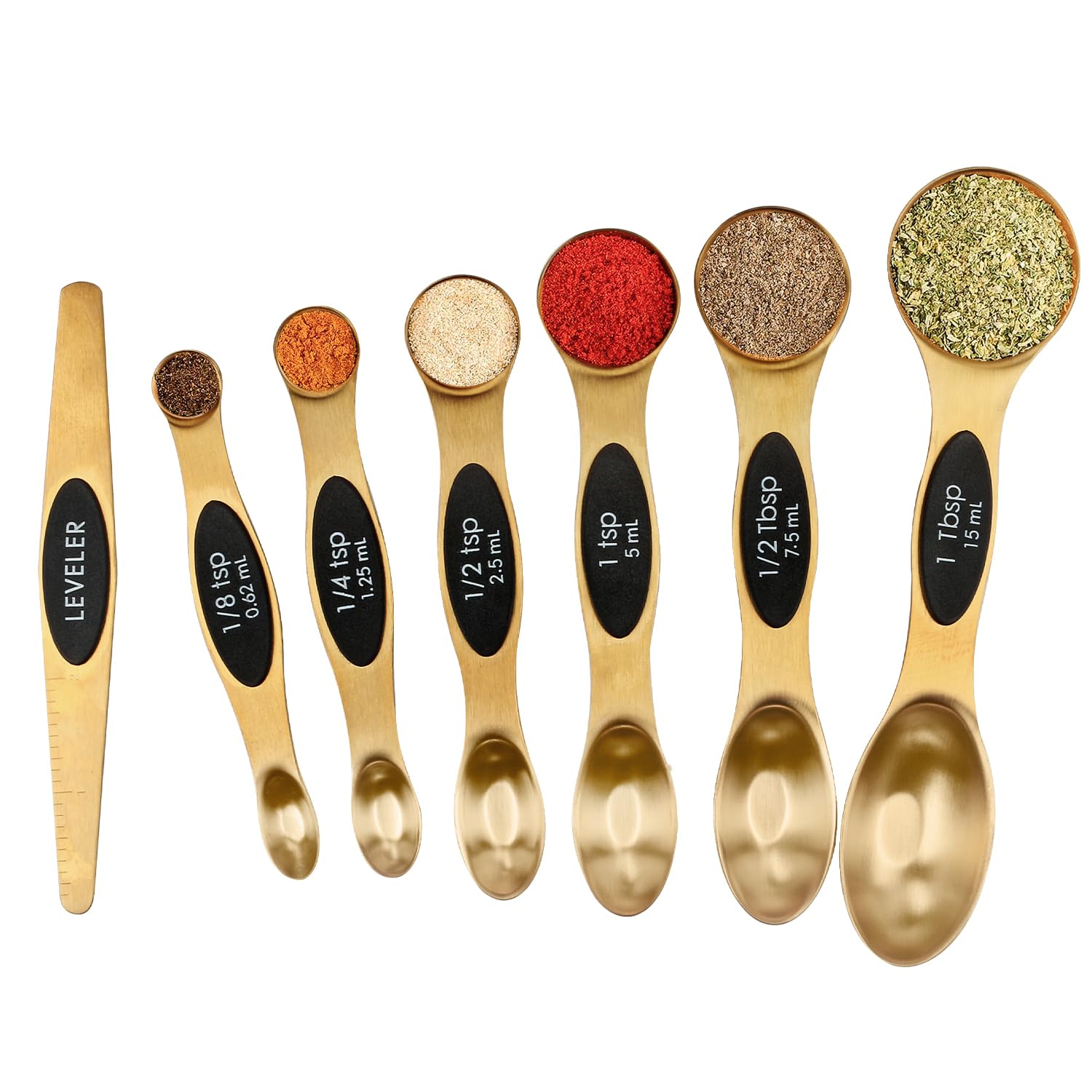 Magnetic Measuring Spoons Set Stainless Steel with Leveler, 7pcs, Gold