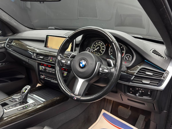 Here at Motor Gurus we are delighted to offer a BMW X5 3.0 40d M Sport Auto xDrive. This vehicle is in very good condition when taking into consideration the vehicle's age and mileage. This specific vehicle is finished in a GLOSS BLACK and is matched with a BLACK LEATHER interior. This vehicle comes included with: FRONT & REAR PARKING SENSORS, REAR PARKING CAMERA, PRIVACY GLASS, SLIDING GLASS PANORAMIC ROOF, ELECTRIC TAILGATE, FRONT HEATED/ELECTRIC SEATS, DRIVER MEMORY SEAT, CRUISE CONTROL, HEADS UP DISPLAY, AUTOMATIC HEADLIGHTS, AUTO HOLD, TWIN CUPHOLDERS, DRIVING MODES, CLIMATE CONTROL, SAT NAVIGATION, DAB RADIO, BLUETOOTH AUDIO, TELEPHONE CONNECTIVITY, AMBIENT LIGHTING, COLLISION AVOIDANCE, LANE KEEPING ASSIST, TYRE PRESSURE MONITORING AND MUCH MORE! Our BMW X5 3.0 40d M Sport Auto xDrive has come to us with SERVICE HISTORY and 2 KEYS! We will also provide a 12 MONTH MOT and a FRESH OIL SERVICE before it leaves our premises (OTR).