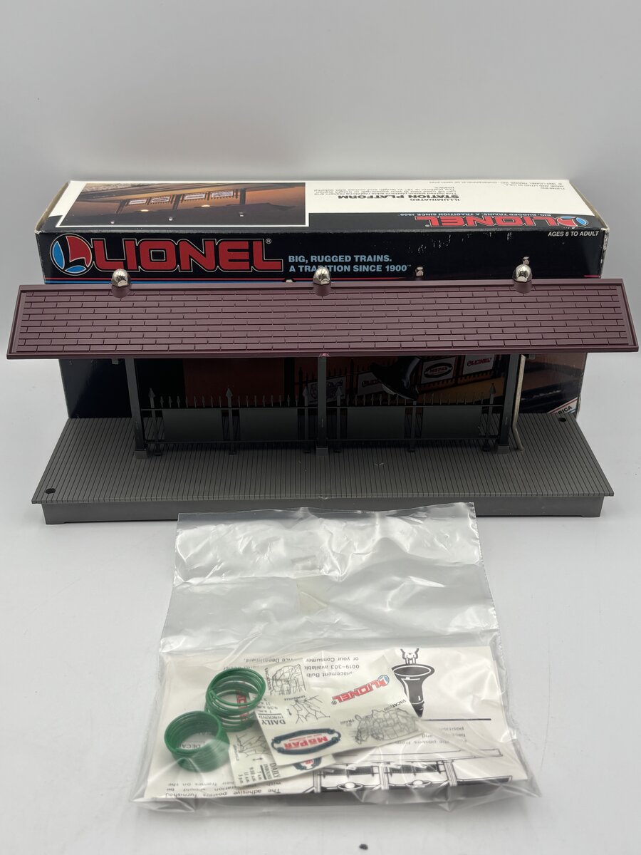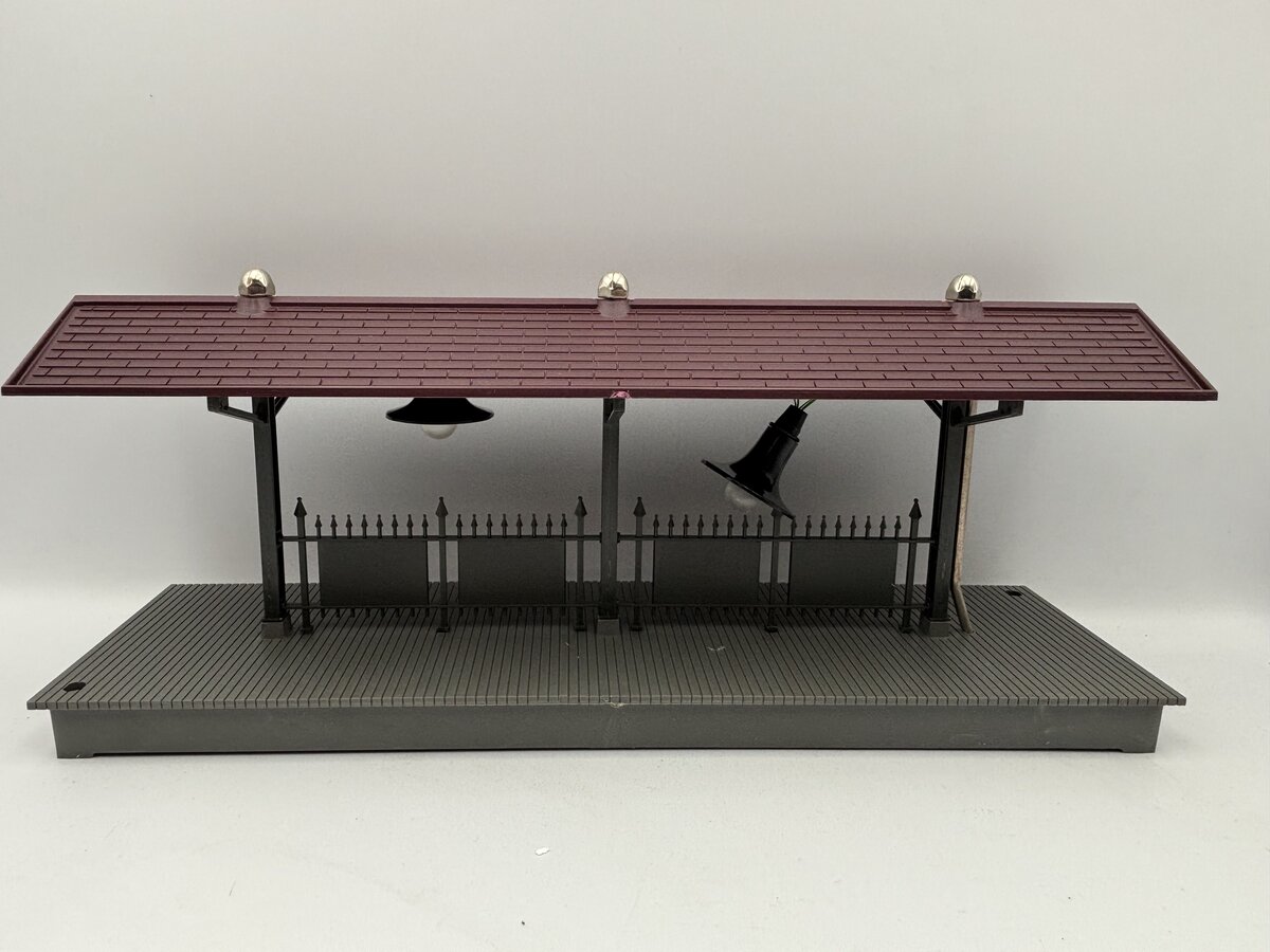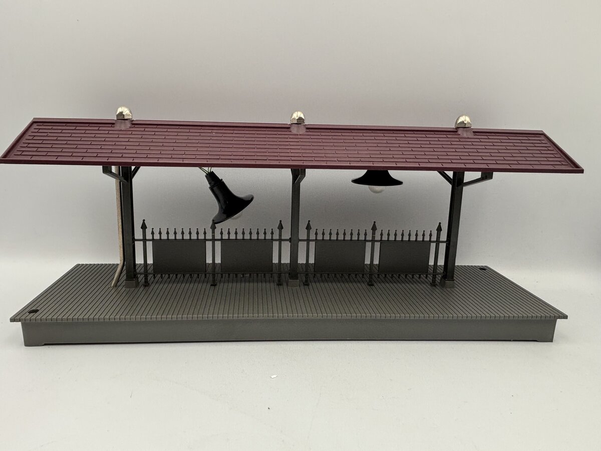 This is a Lionel 6-12748 O/027 Illuminated Station Platform. This platform measures 12 inches long, 3 1/2 inches wide, and features two lights under the roof and is made of durable plastic construction.