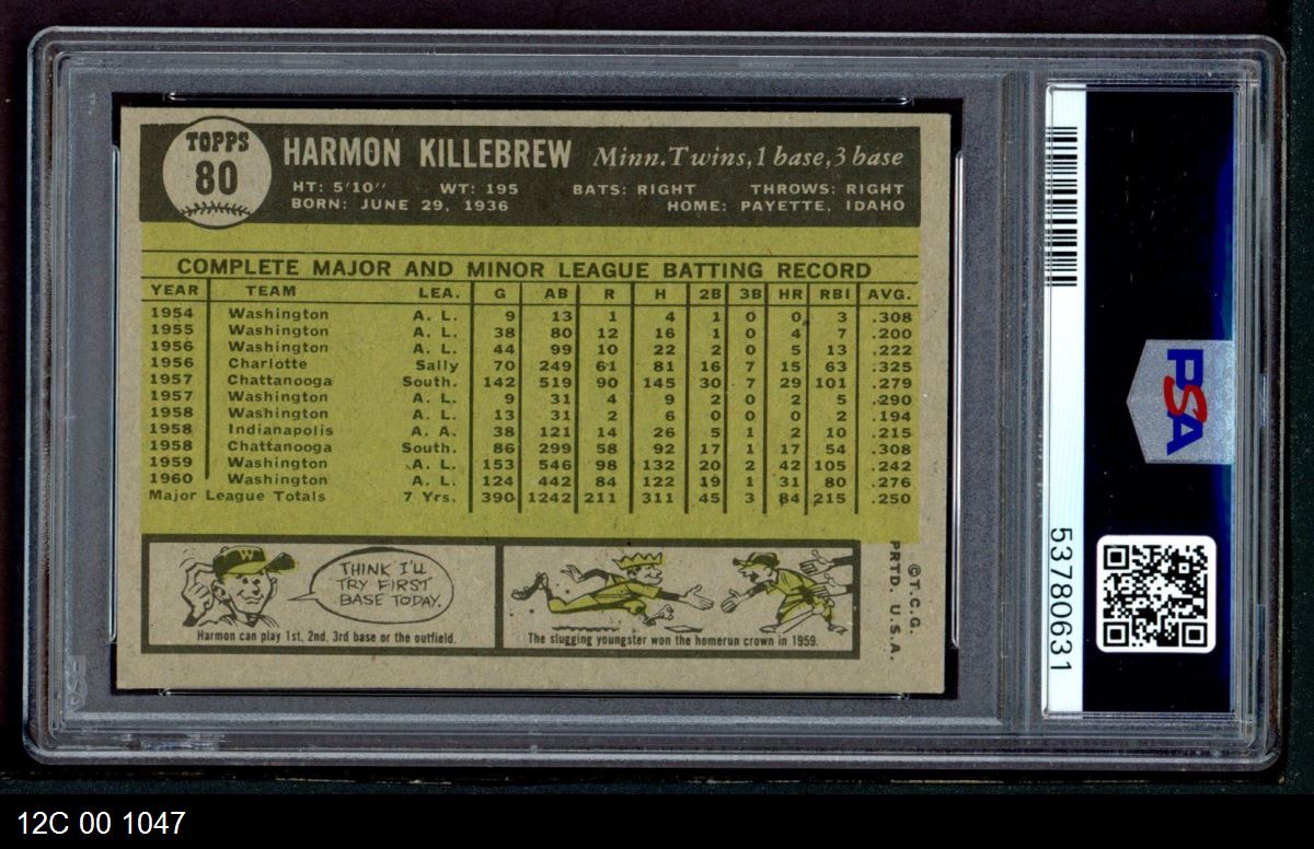 | 1961 Topps #80 Harmon Killebrew | PSA 5 - EX | Front | Back |