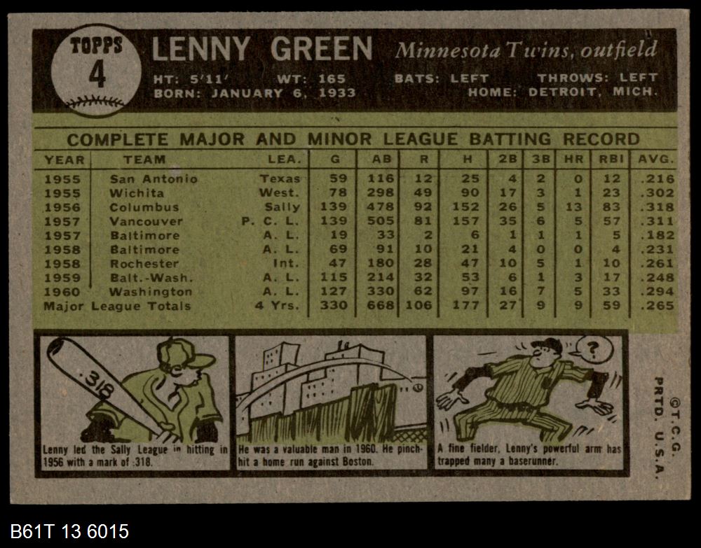 | 1961 Topps #4 Lenny Green | 5 - EX | Front | Back |