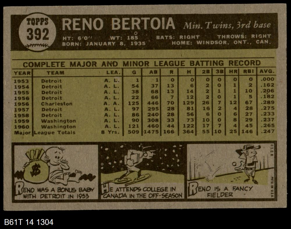 | 1961 Topps #392 Reno Bertoia | 5 - EX | Front | Back |