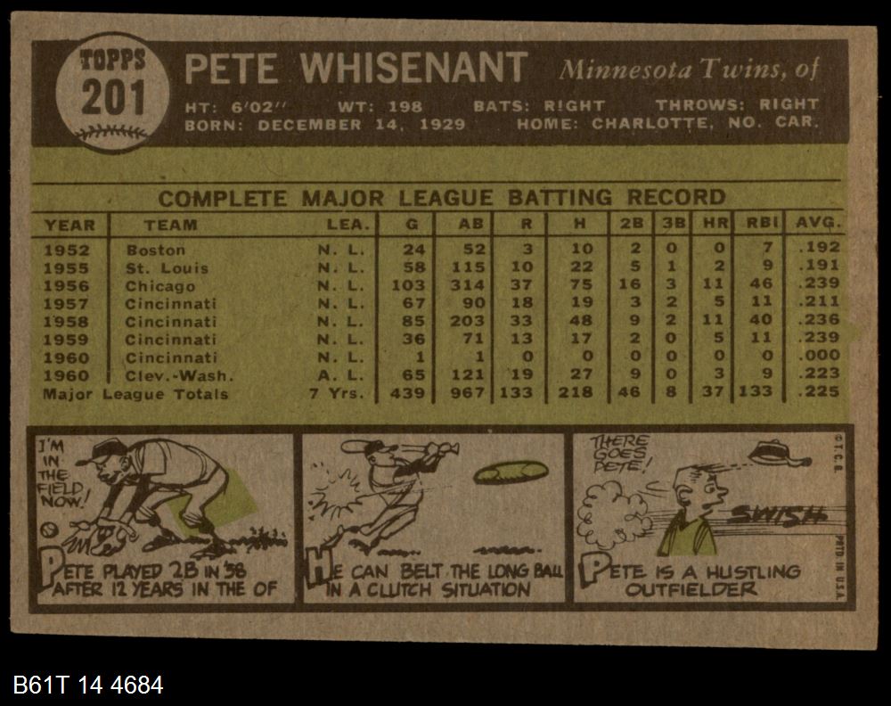 | 1961 Topps #201 Pete Whisenant | 3 - VG | Front | Back |
