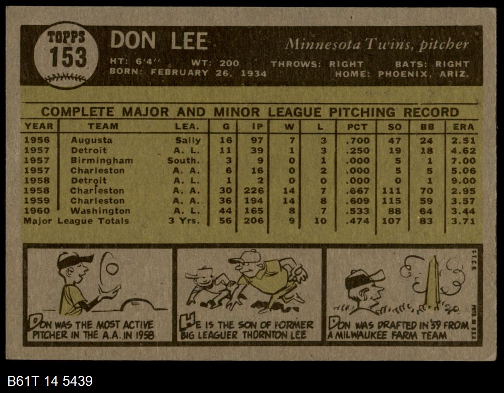 | 1961 Topps #153 Don Lee | 5 - EX | Front | Back |