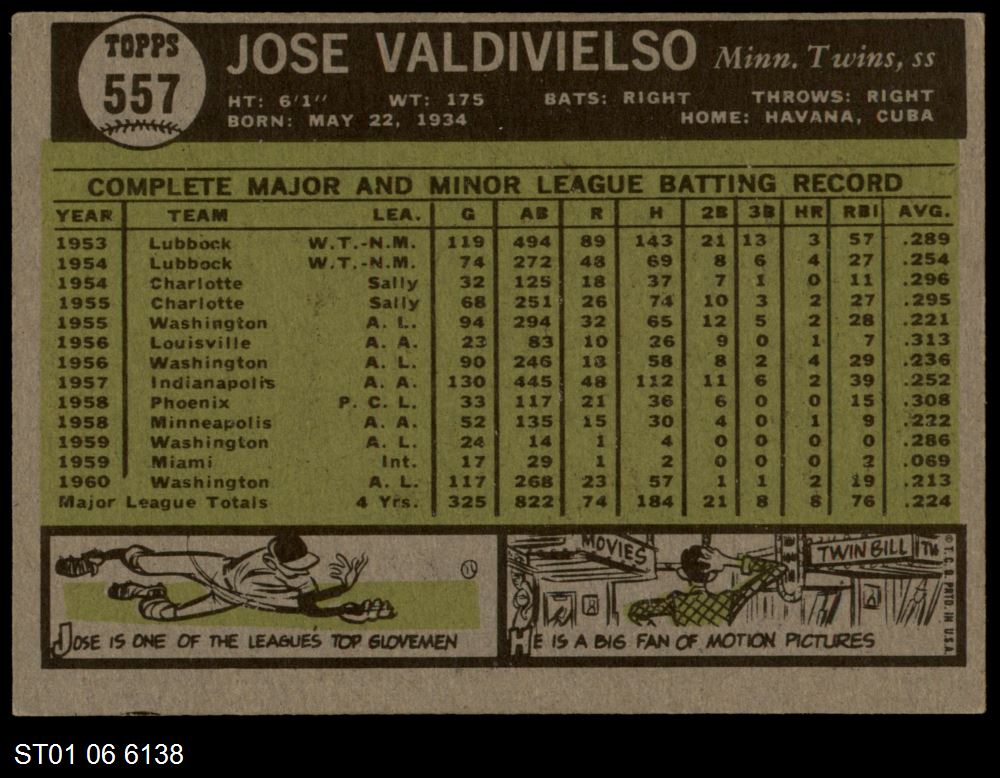 | 1961 Topps #557 Jose Valdivielso | 4 - VG/EX | Front | Back |