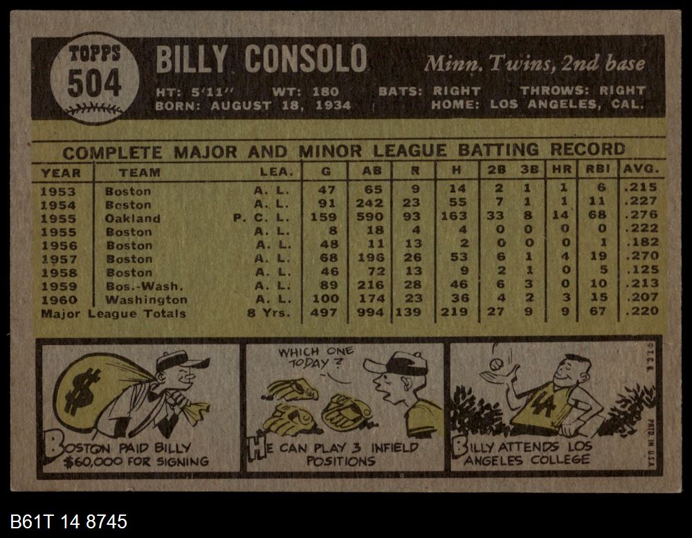 | 1961 Topps #504 Billy Consolo | 5 - EX | Front | Back |