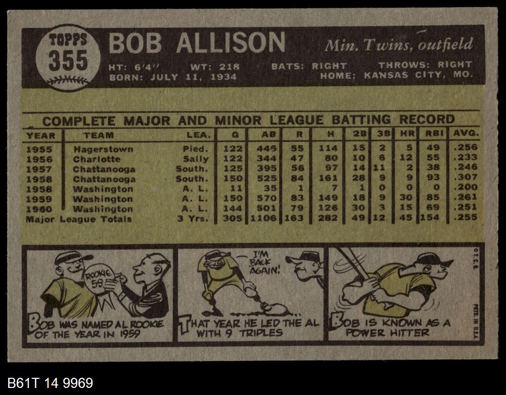 | 1961 Topps #355 Bob Allison | 5 - EX | Front | Back |