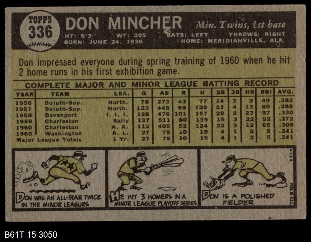 | 1961 Topps #336 Don Mincher | 5 - EX | Front | Back |