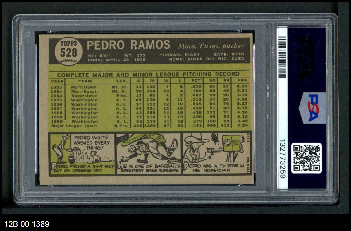 | 1961 Topps #528 Pedro Ramos | PSA 7 - NM | Front | Back |