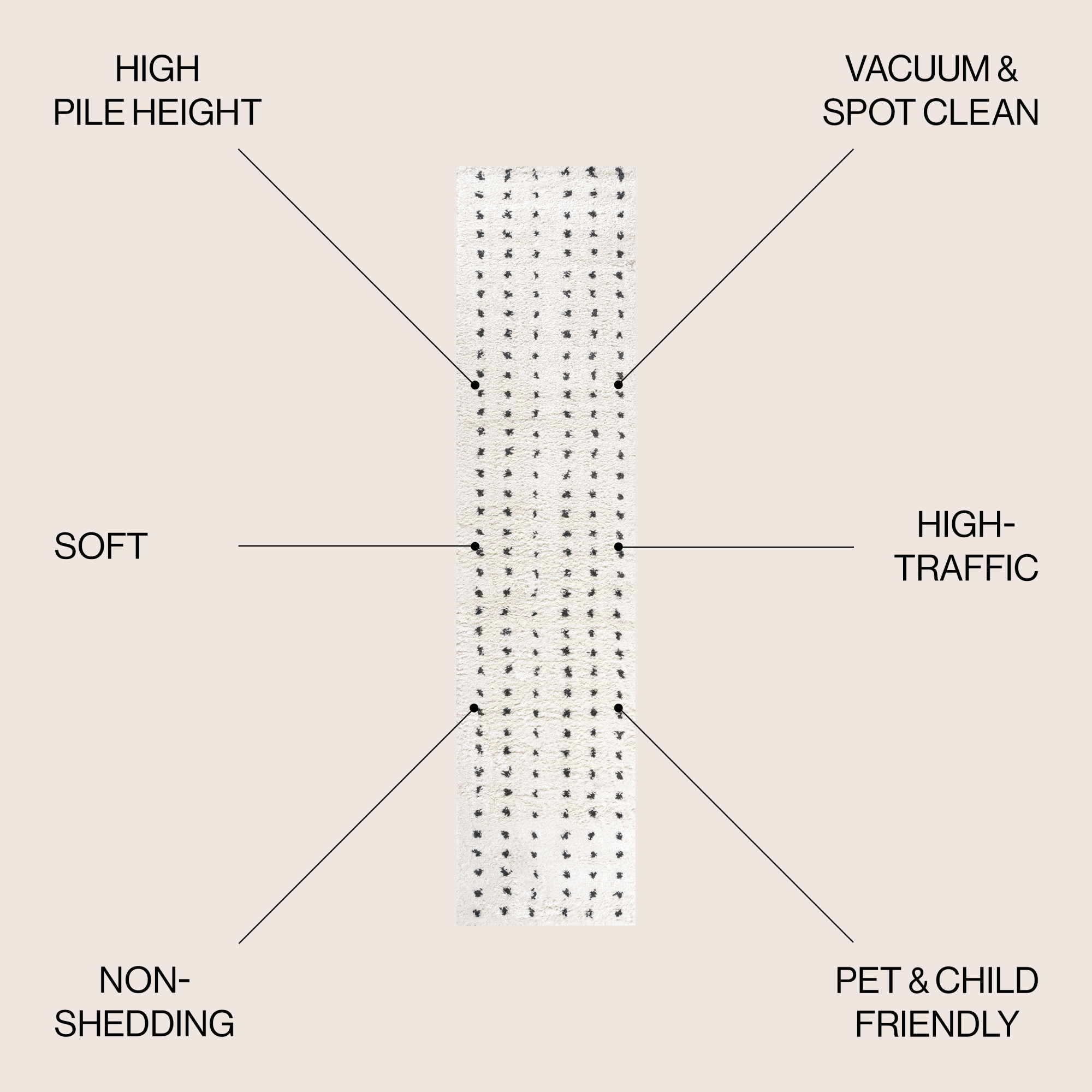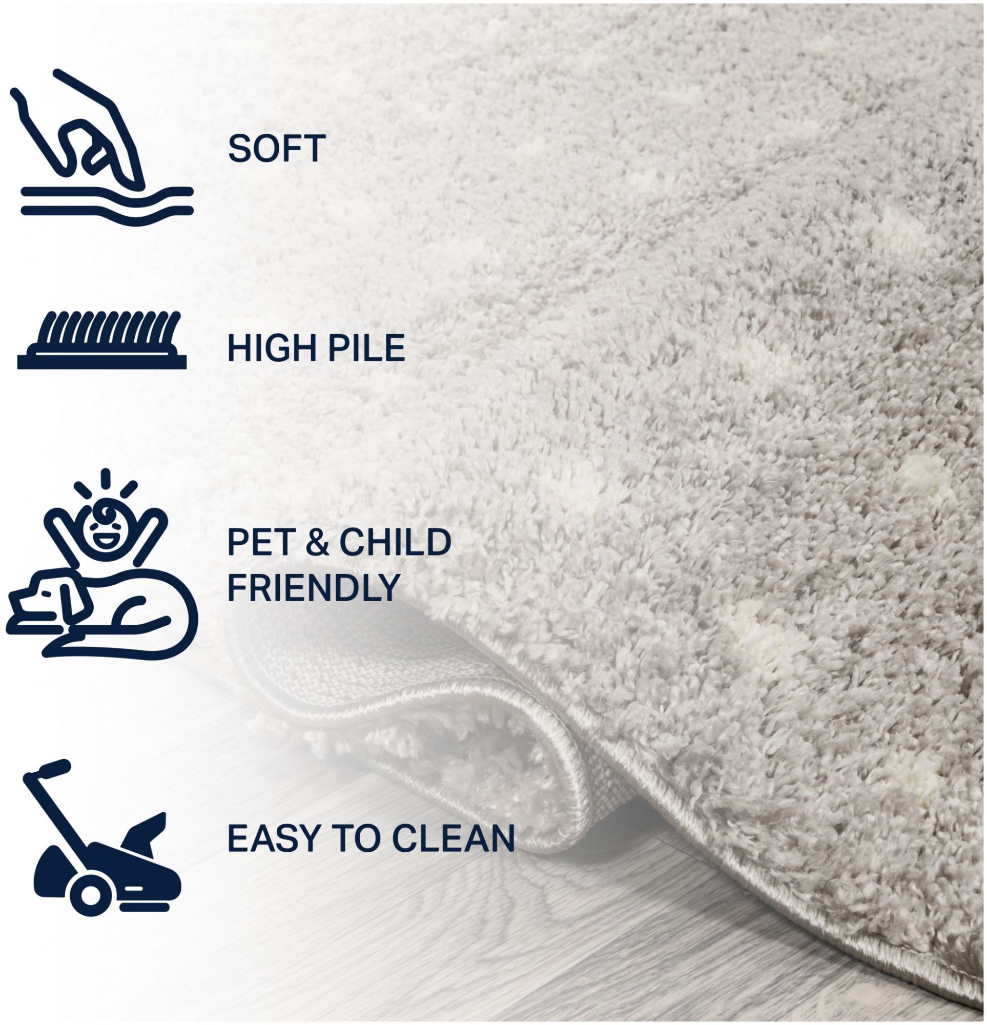 Item DescriptionInspired by mid-century rugs, the JONATHAN Y Lighting geometric dot rug has a soft, low shag pile. The all-over pattern is woven in ivory on a gray background. Add some graphic punch to your living room, bedroom, or reading nook with this easy-care rug.