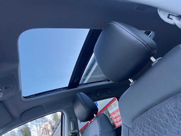 ..Adaptive cruise control, Analogue clock, Blind spot monitor, Bluetooth integrated into audio unit, Door ajar warning lamp, E-call, Emergency stop signalling system, Engine oil change reminder, Engine start/stop button, Front and rear parking sensors, Lane departure prevention, Lane departure warning system, Navigation system, PAS, Rear cross traffic alert, Rear parking camera, Service indicator, Smartphone link display with Apple CarPlay and Android Auto, Speed limiter, Tachometer, Traffic sign recognition, 2 Tweeters, 4 speakers, 4.2-Inch Colour LCD display, DAB Digital radio, Steering wheel mounted audio controls, USB connection, 1 speed with intermittent rear wiper + washer, 2 speeds (low/high) with adjustable intermittent front wiper + washer, Automatic front rain sensing wipers, Automatic headlamp levelling, Automatic headlights, Body colour door mirrors and handles, Body coloured bumpers, Chrome front grille, Chrome lower front bumper insert, Double sliding panoramic sunroof, Electric adjustable heated door mirrors, Electric front+rear windows, Electrically folding door mirrors with built in turn signal lamp, Front fog lamps, Green tinted windows, High mounted stop lamp, LED daytime running lights, LED multi reflector headlamps with low and high beam, LED rear combination lamp, Low fuel warning lamp, Rear fog lamps, Rear privacy glass, Rear side wing doors, Rear window demister, Silver roof rails, Visible VIN plate, Wheel arch extensions with side skirts, 12V accessory socket in centre lower box, 12V Accessory socket in the load area, 2x Front and rear door bottle holders, 3 bench rear seats in 2nd row, 3 rear headrests, 3 spoke leather covered steering wheel, 60/40 split folding rear seat, Black shift knob with silver accent, Centre cabin light, Child seat tether anchorage points x3, Chrome handbrake release button, Chrome interior door handles, Climate control air conditioning, Driver/front passenger seat height adjustment, Driver/passenger sunvisors with ticket holders + illuminated vanity mirrors, Drivers footrest, Front centre armrest, Front cupholders x 2, Front footwell and centre lower console box lights, Front head restraints, Front map light, Front passenger side assist grip, Front suede door trim insert, Glovebox light, Heater, ISOFIX child seat anchorages X 2, Luggage area lamp, Luggage cover, Pollen filter, Rear assist grips x2, Removable double luggage room floor, Silver centre console ornament, Silver door trim ornaments, Single
