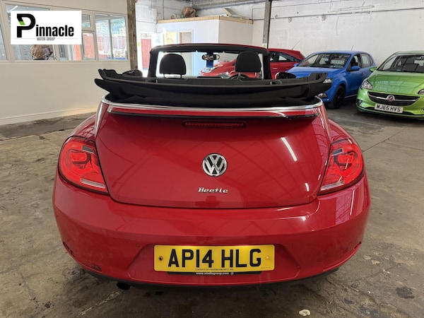 2014 VOLKSWAGON BEETLE 1.2 TSI Design 2dr Cabriolet 105,492 miles Petrol Manual This Volkswagon Beetle 1.2 TSI 2dr Cabriolet includes Bluetooth, NAV, DAB Digital Radio, 3 Previous Owners and £215.00 Road Tax. This vehicle comes with partial service history, including 6 recorded services, and will be supplied with a fresh service and 12 months’ clean MOT, making it ready for the road. Features include: - Front & Rear Parking Sensors, NAV, Bluetooth, DAB Digital Radio, 17” Alloy Wheels, ULEZ Compliant and 5-Speed Manual Gearbox. Why Buy From Us? Welcome to Pinnacle Motor Group Ltd – Quality used cars you can trust! At Pinnacle Motor Group Ltd, we make car buying simple and stress-free. Our indoor showroom offers a comfortable and relaxed environment where you can browse around 50 quality used cars, with prices ranging from £1,000 to £20,000. ? 12 Months Clean MOT & Fresh Service – This vehicle comes with a full 12-month MOT and a fresh service and new windshield wipers installed so it’s ready to hit the road with complete peace of mind. ? Warranty & Breakdown Cover Included – Every vehicle includes a 3-month warranty and breakdown cover as standard, with upgrade options available for 6 or 12 months. ?Open 7 Days a Week & Highly Rated – We pride ourselves on great customer reviews and a friendly, no-pressure buying experience. Our friendly independent team is here to ensure you drive away in a car that suits both your needs and your budget.