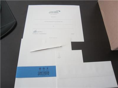 YOU ARE BIDDING/PURCHASING A BRITISH AIRWAYS CONCORDE SMYTHSON OF BOND STATIONARY SET. THE SET HAS "NEVER" BEEN OPENED. THE CLEAR WRAP IS RIPPED, BUT STILL ON THE STATIONARY SET. I HAVE AN OPENED SET THAT I HAD SO THAT I CAN TAKE PICTURES OF THE ITEMS INSIDE THE CLOSED SETS. I HAVE REDUCED THE PRICE ACCORDINGLY FOR YOU. THESE ARE IN NEW CONDITION. ANY QUESTIONS, PLEASE FEEL FREE TO WRITE TO ME. ALL CONCORDE ITEMS ARE PIECES OF HISTORY, SO DON'T WAIT TO GET THESE IN YOUR COLLECTION. TAKE A LOOK AT THE PICTURES TO SEE FOR YOURSELF. PLEASE BE SURE TO CHECK OUT MY OTHER AUCTIONS AS I LIST NEW ITEMS EVERY WEEK. View My Other Items For Sale I HAVE A LOT OF CONCORDE ITEMS TO BE LISTED INCLUDING OTHER STERLING TAGS, SO BE SURE TO KEEP CHECKING. Visit My eBay Store THANKS, GOOD LUCK AND HAVE FUN BIDDING. I ALSO DISCOUNT SHIPPING ON MULTIPLE WINNING BIDS.