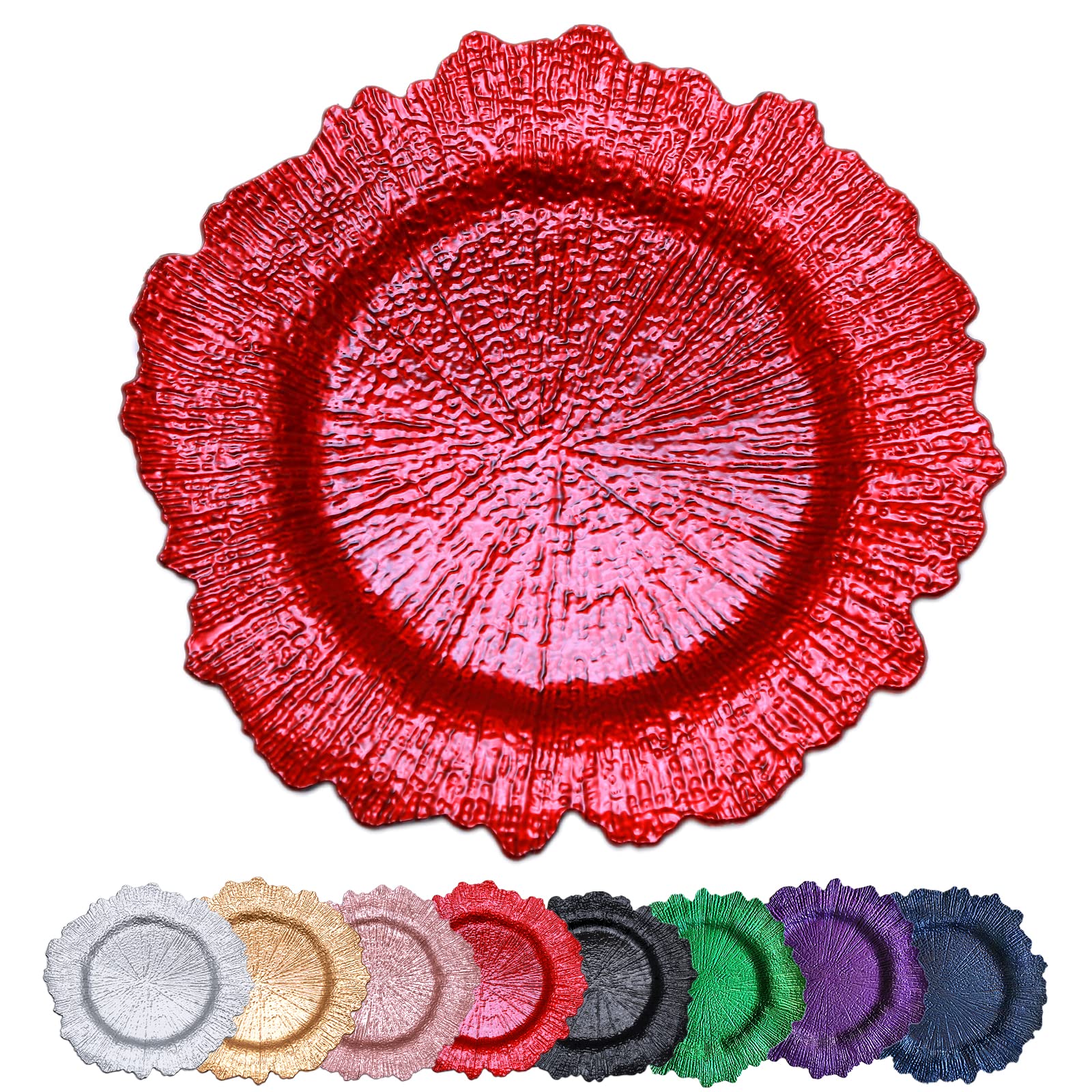 - PRODUCT SIZE: Round coral reef-shaped charger plates, measures 13 inches. These plates are perfect for placing under salad bowls, soup bowls, and main course plates to prevent accidental spillage and protect your table.