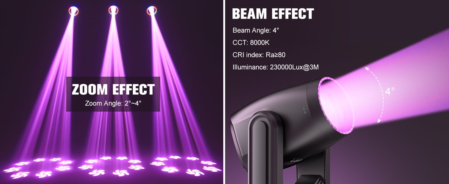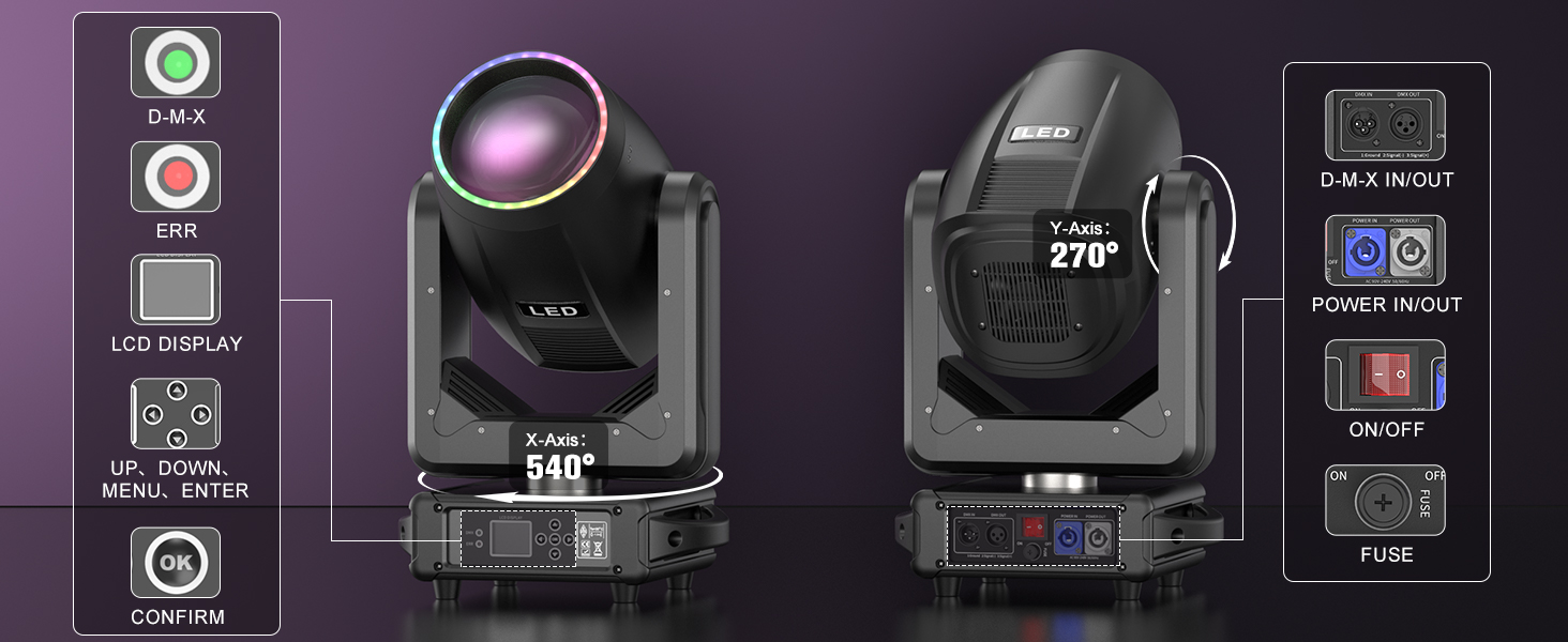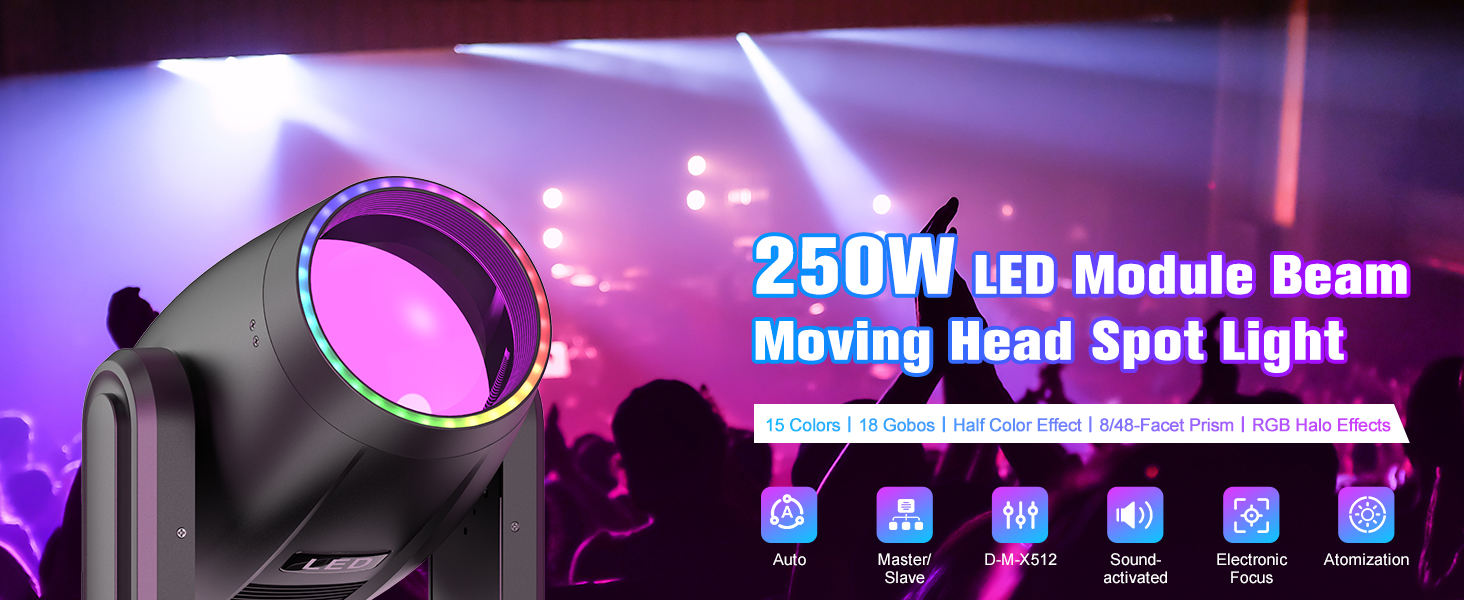 Equipped with a 250W high-brightness LED module, this beam light delivers ultra-stable performance with exceptional luminosity and energy efficiency.