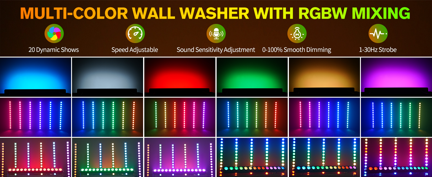 Rich Dynamic Effects & Precise Adjustment: Choose from 8 static colors and 20 dynamic lighting shows. Easily adjust speed, sound sensitivity, linear dimming (0-100%), and strobe effects (1-30Hz) for complete creative control.