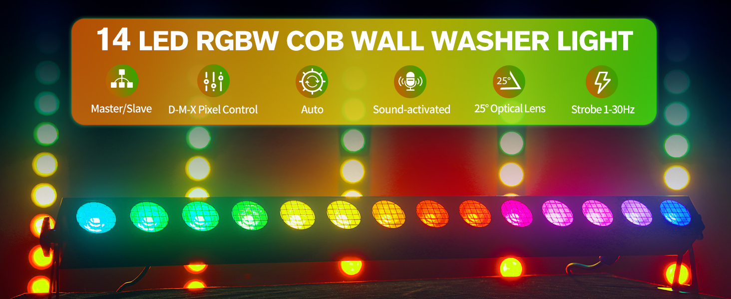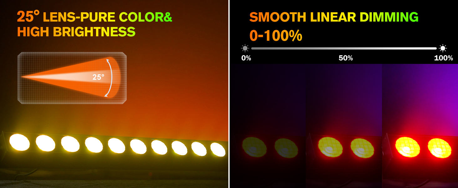 Advanced RGBW Optics & Control: Features 14 powerful 20W RGBW COB LEDs with DMX512 pixel-level control. A 25° professional lens guarantees uniform color mixing and high-intensity output, while the mesh-front panel protects the lens, enhances aesthetics, and minimizes glare.