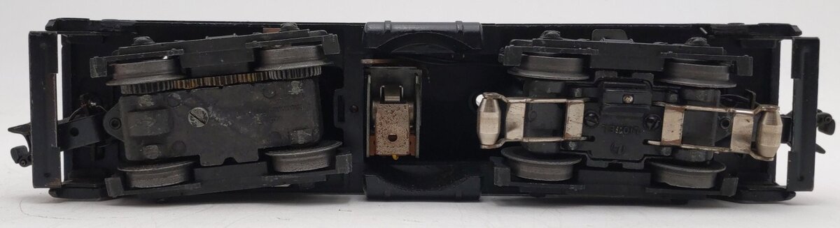 This item has been graded per TCA standards C-6: Very Good. This locomotive shows scratches, scrapes, nicks, dents, and paint loss throughout various sections of the shell and chassis. This locomotive shows rust on the screws/pins and switches. The overall appearance of this item may be improved with a gentle and thorough cleaning. The decals are faded and chipped, and the bell is loose. The rails are loose and some trim pieces are slightly bent. The instruction manual is not included. The original box is included. Please check the photos for a detailed look at this item. Overall condition is Very Good.