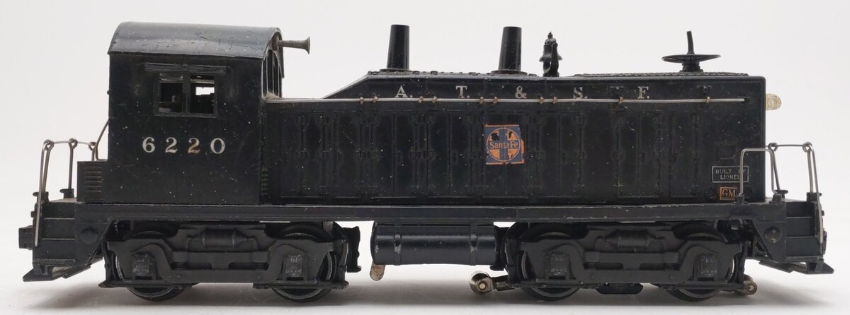 Here is a Lionel 6220 Vintage O AT&SF Type II GM NW-2 Diesel Switcher #6220 with Bell from 1949-50. This is one of the nicest of the NW-2 switchers. This item features a die-cast frame, an operating bell, a motor with reverse unit, die-cast metal trucks, working knuckle couplers, all-metal wheels and gears, and a headlight.
