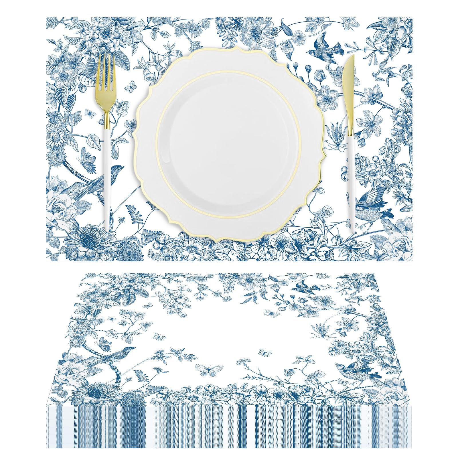 - Disposable Paper Table Mats Set:You will receive 50 pieces of blue floral paper placemats for dining table, lightweight and portable,these disposable paper placemats are ideal decorations for your parties,that can sufficient for party or daily use and replacement needs.