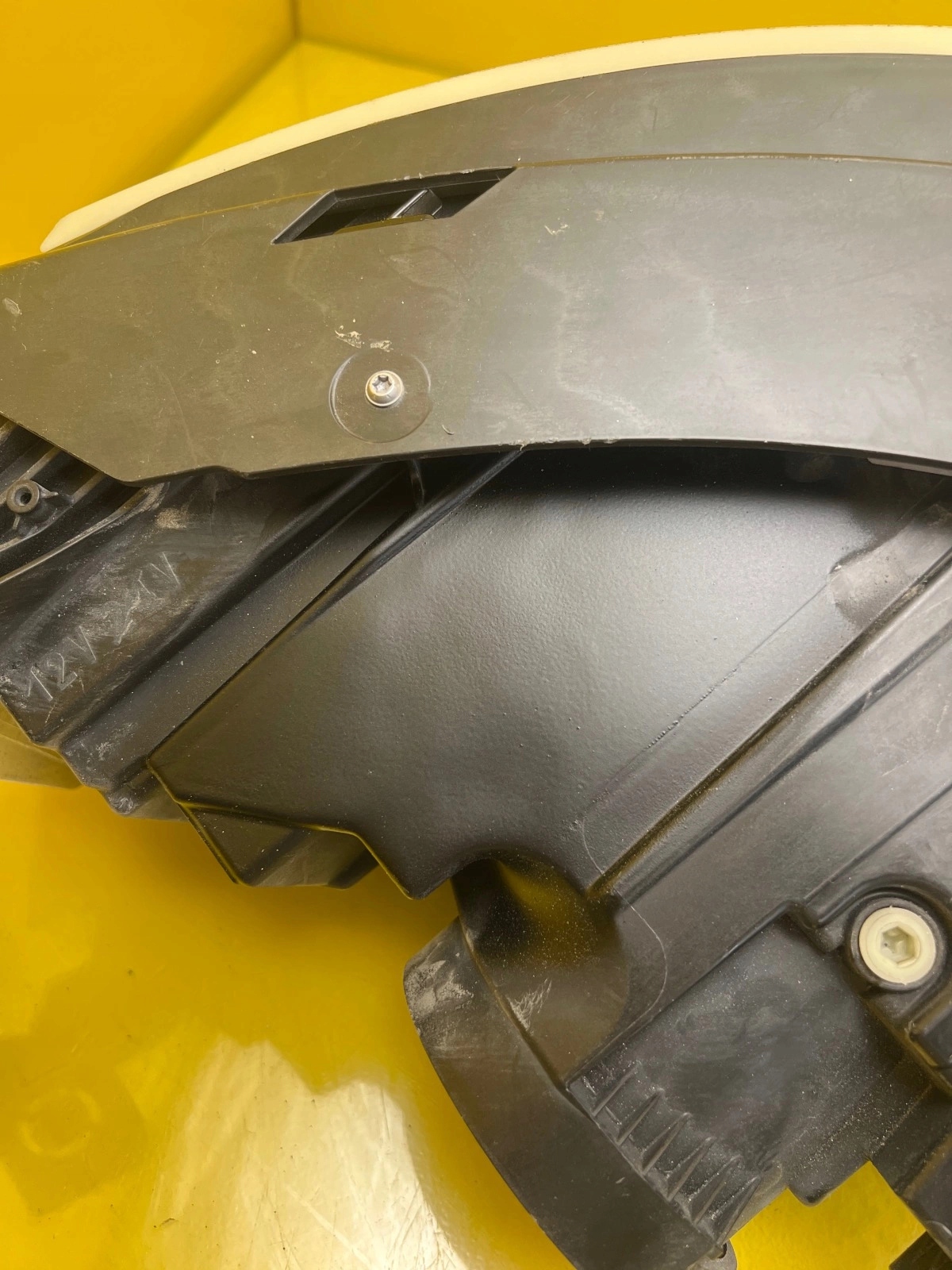 Scheinwerfer hat repariertes Gehäuse sichtbar auf den Fotos