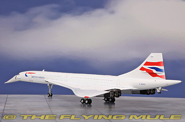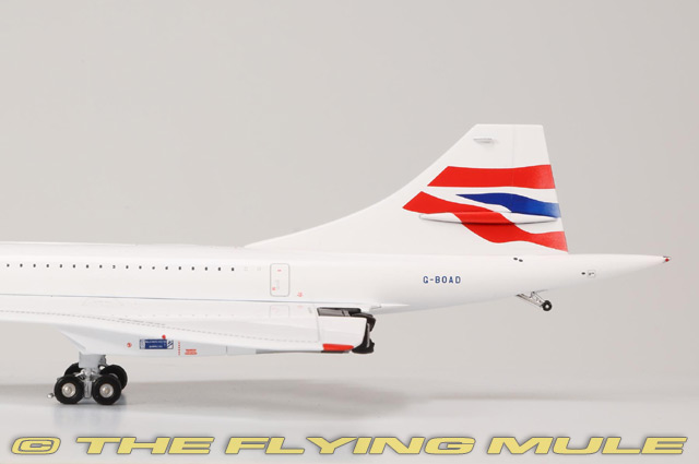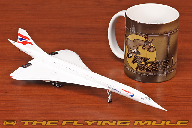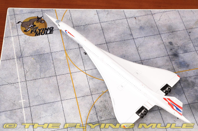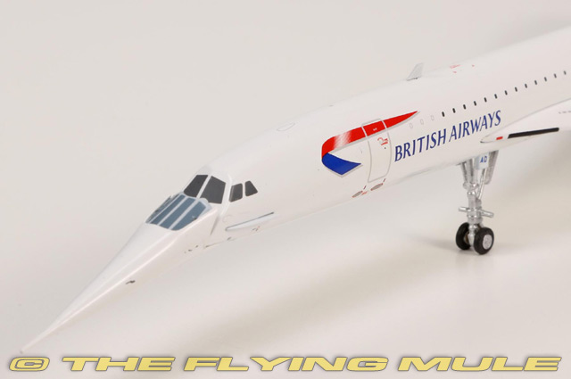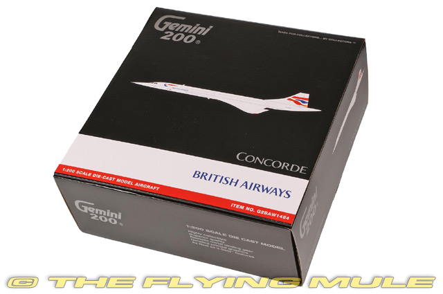 Concorde 210 first flew on 25 August 1976 from Filton. Registered G-BOAD and painted with Singapore Airlines livery on the port side and British Airways livery on the starboard for a joint service by the two airlines between Bahrain and Singapore International Airport at Paya Lebar for three months in 1977, and from 1979 to 1981. This aircraft also set the fastest Atlantic crossing by any Concorde on 7 February 1996, taking off from New York JFK and landing in London Heathrow 2 hours, 52 minutes, and 59 seconds later. It departed from Heathrow for the final time on 10 November 2003, and flew to JFK airport in New York. G-BOAD spent more time in the air than any other Concorde at 23,397 hours. G-BOAD was incorporated into the Intrepid Sea, Air & Space Museum in 2008. BAe/Aerospatiale ConcordeDesigned as a part of a collaborative effort by Britain and France to create a supersonic airliner, the Concorde was first flown on March 2nd, 1969.© Copyright 2003-2026 The Flying Mule, Inc. GeminiJets Gemini 200The GeminiJets "Gemini 200" range presents higly-detailed, ready-made diecast models of civilian and military aircraft in 1:200 scale. Prized by collectors worldwide, Gemini define the benchmark by which other 1:200 aircraft brands are judged.GeminiJets "Gemini 200" diecast airplanes feature: