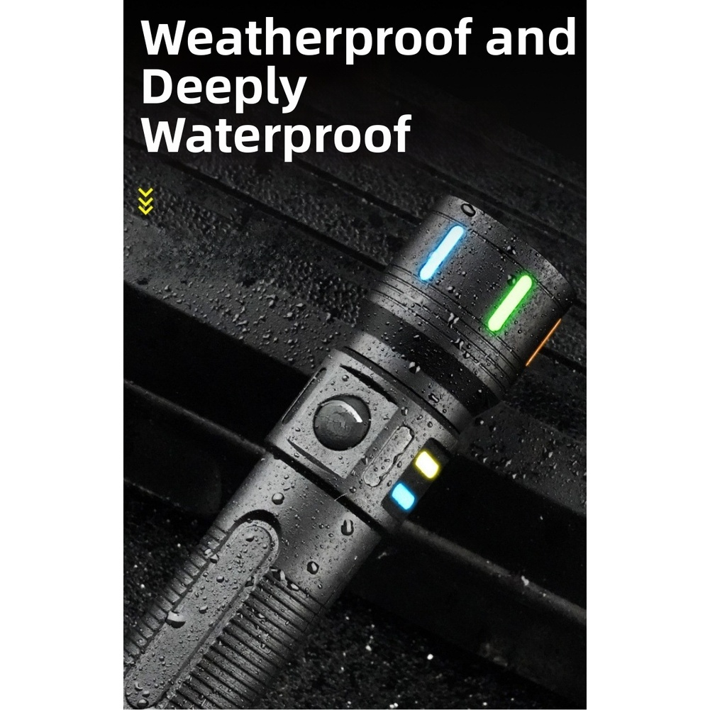 *IP67 Waterproof : Built to withstand harsh weather conditions, this flashlight is rated IP67 waterproof and constructed from aviation-grade aluminum alloy,  it remains operational even in heavy rain or snow while resisting drops and impacts.