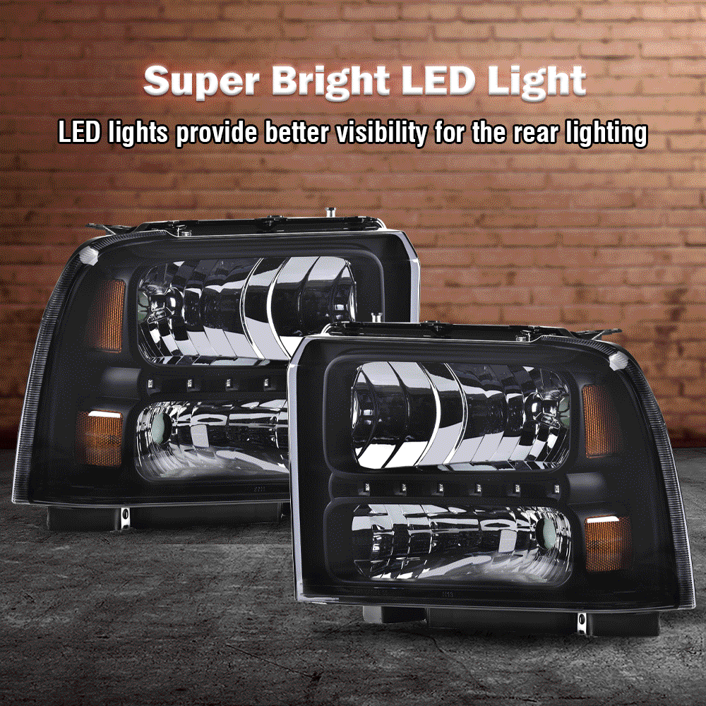 Fit For 2005-2007 Ford F250 F350 F450 F550 Super Duty Black Headlights HeadLamps