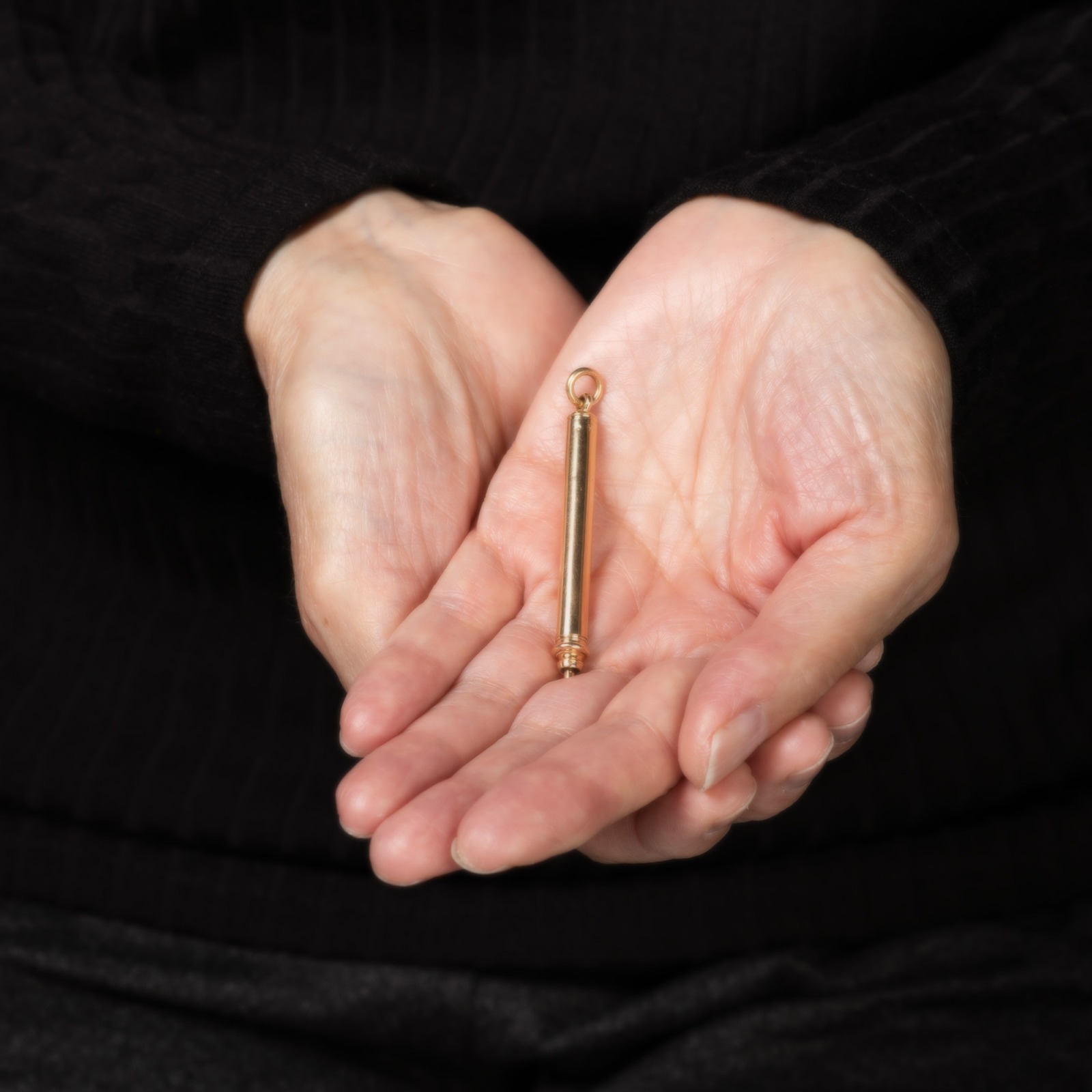 Size & Measurements: The pendant measures 2 1/2 inch in length and full retracts to 4 1/2 inches.