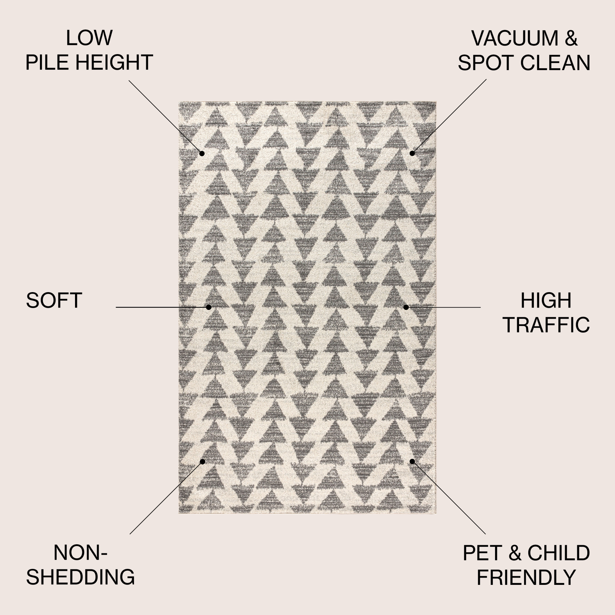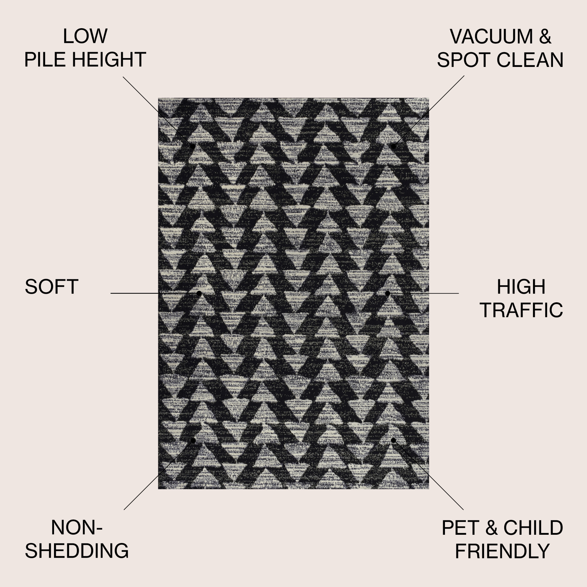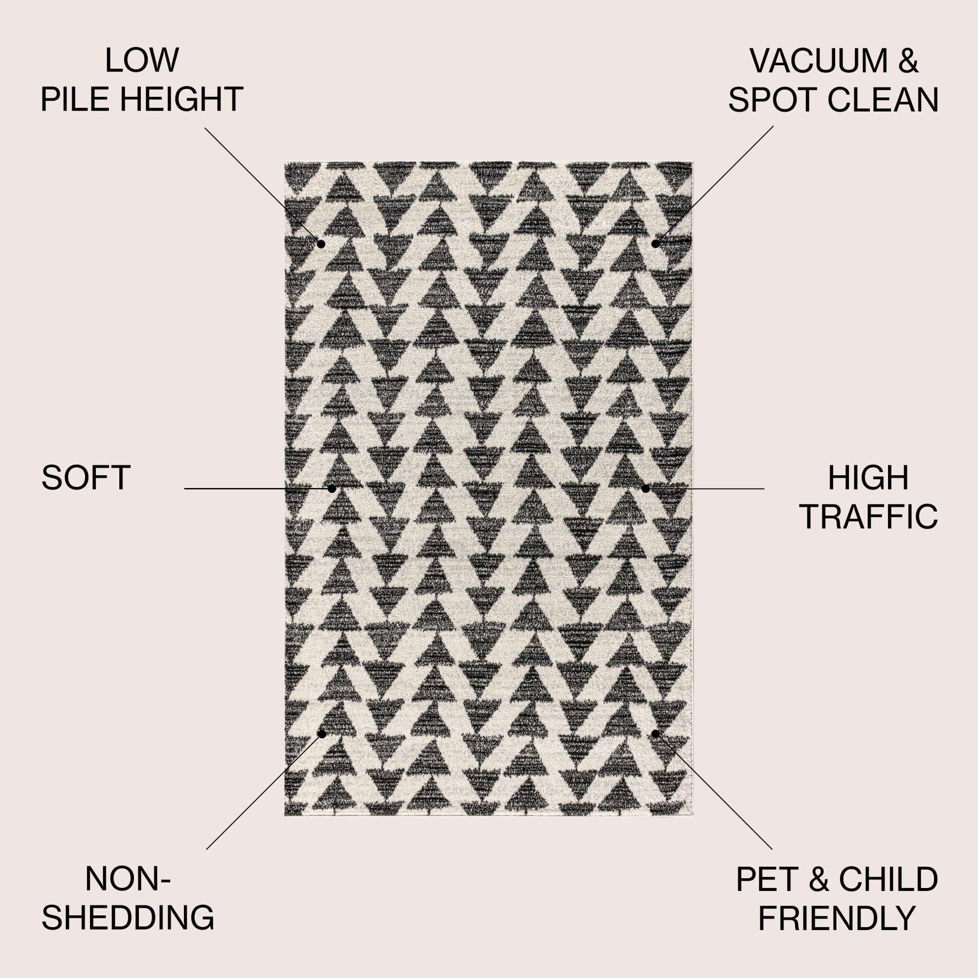 Item DescriptionInspired by vintage Moroccan tribal rugs, the JONATHAN Y Lighting modern version is power-loomed with a short pile. Rows of triangle symbols are woven in cream on a field of black; the mingled threads recall traditional handwoven rugs. Add some Bohemian style to your home with this easy-care rug.