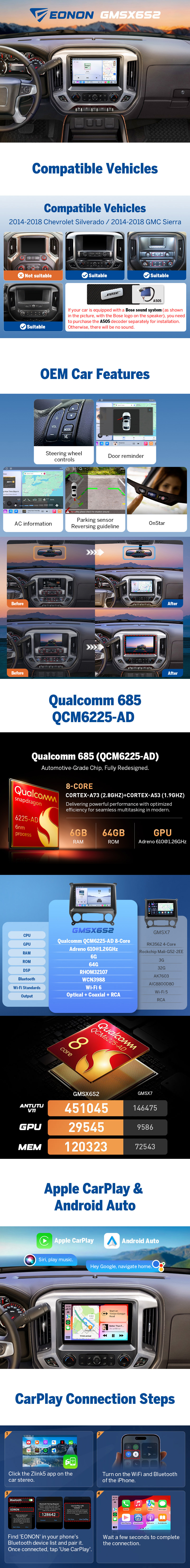 Choose Eonon GMSX6S2 for a high-end, factory-fit upgrade with the performance, sound, and screen your truck deserves.