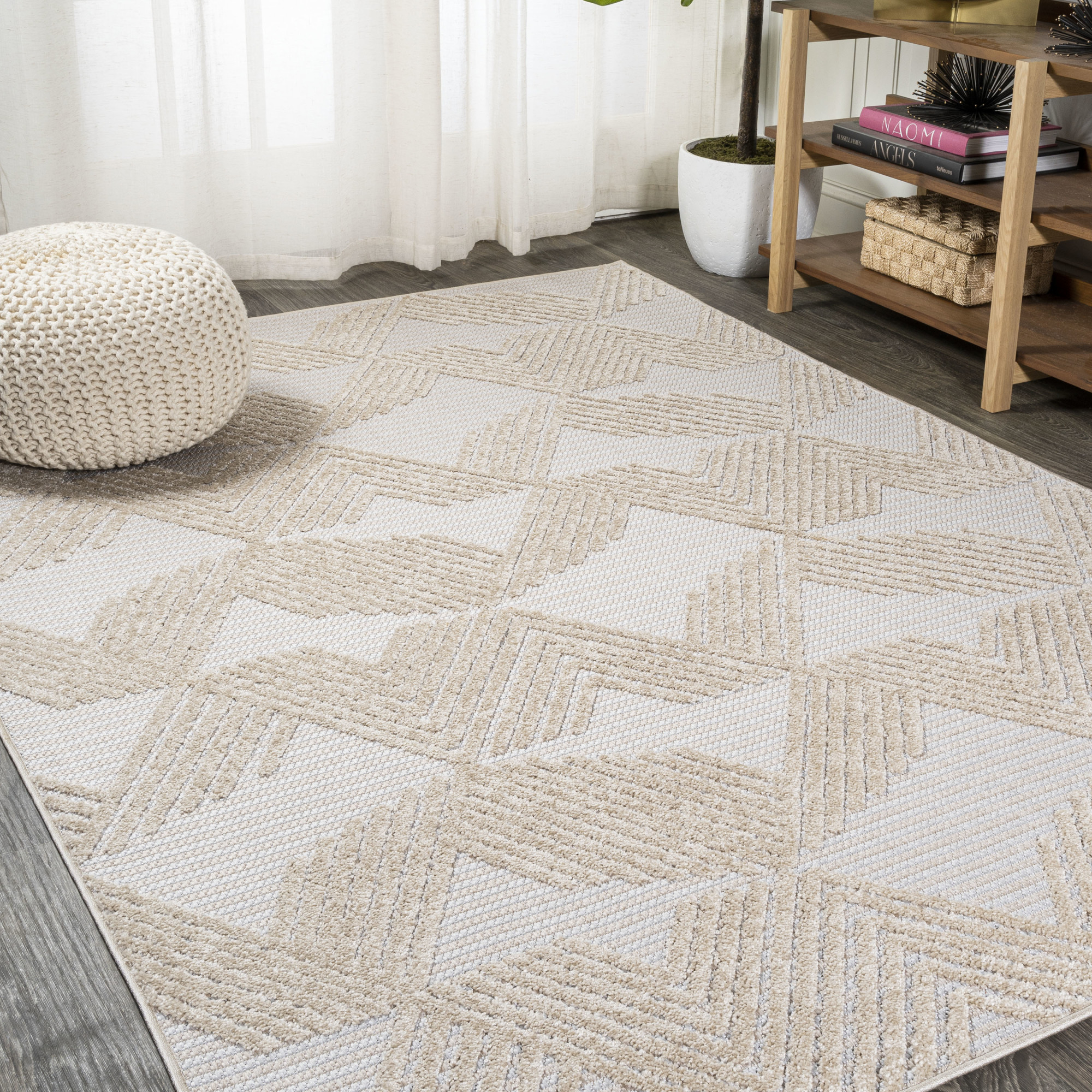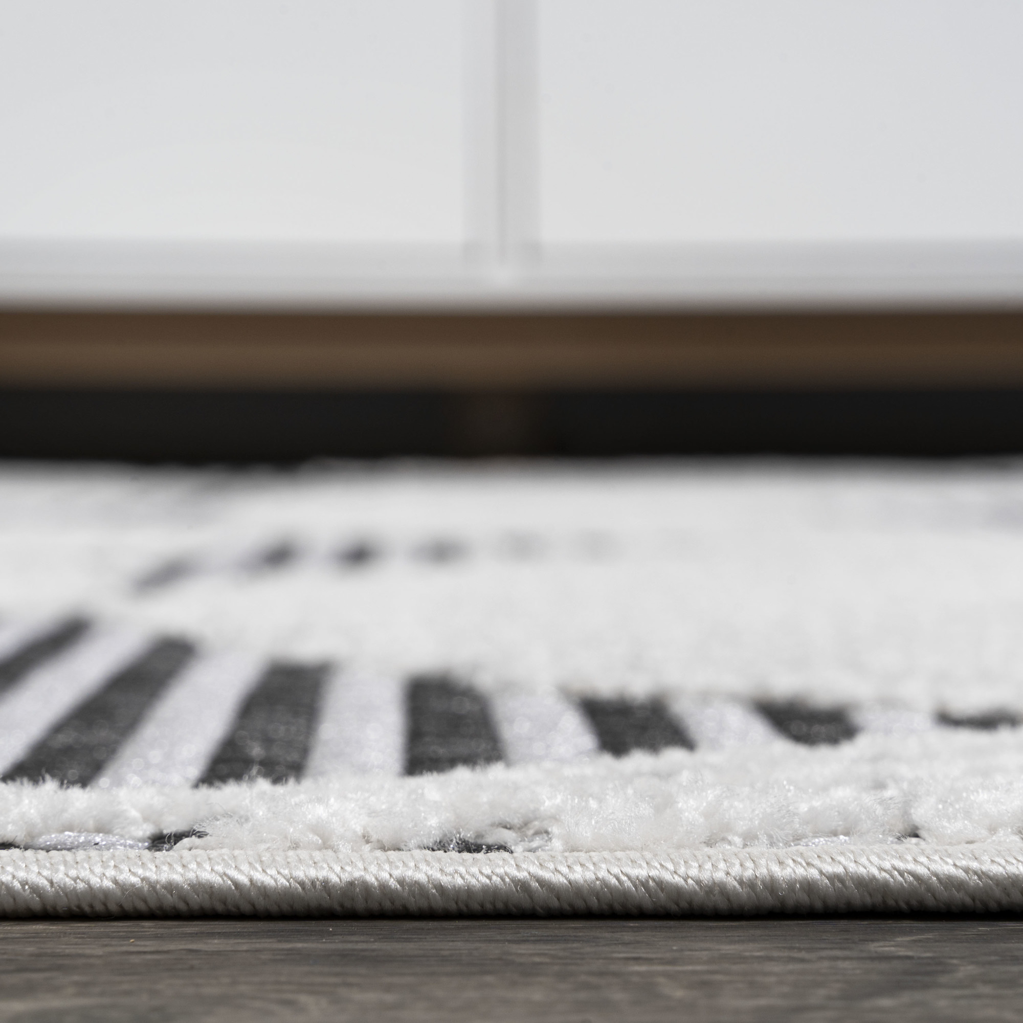 Item DescriptionInspired by Art Deco design, our jazzy geometric rug is power-loomed with a short pile. The all-over pattern is woven in a modern color palette. Add some graphic mid-century punch to your living room, dining room, entry, or bedroom with this easy-care rug.