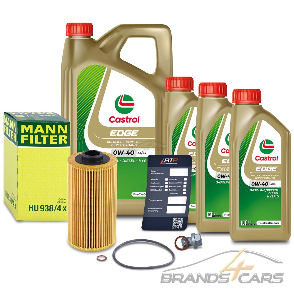 1x Ölwechsel Set - MANN-FILTER ÖLFILTER + 8 L CASTROL EDGE 0W-40 A3/B4