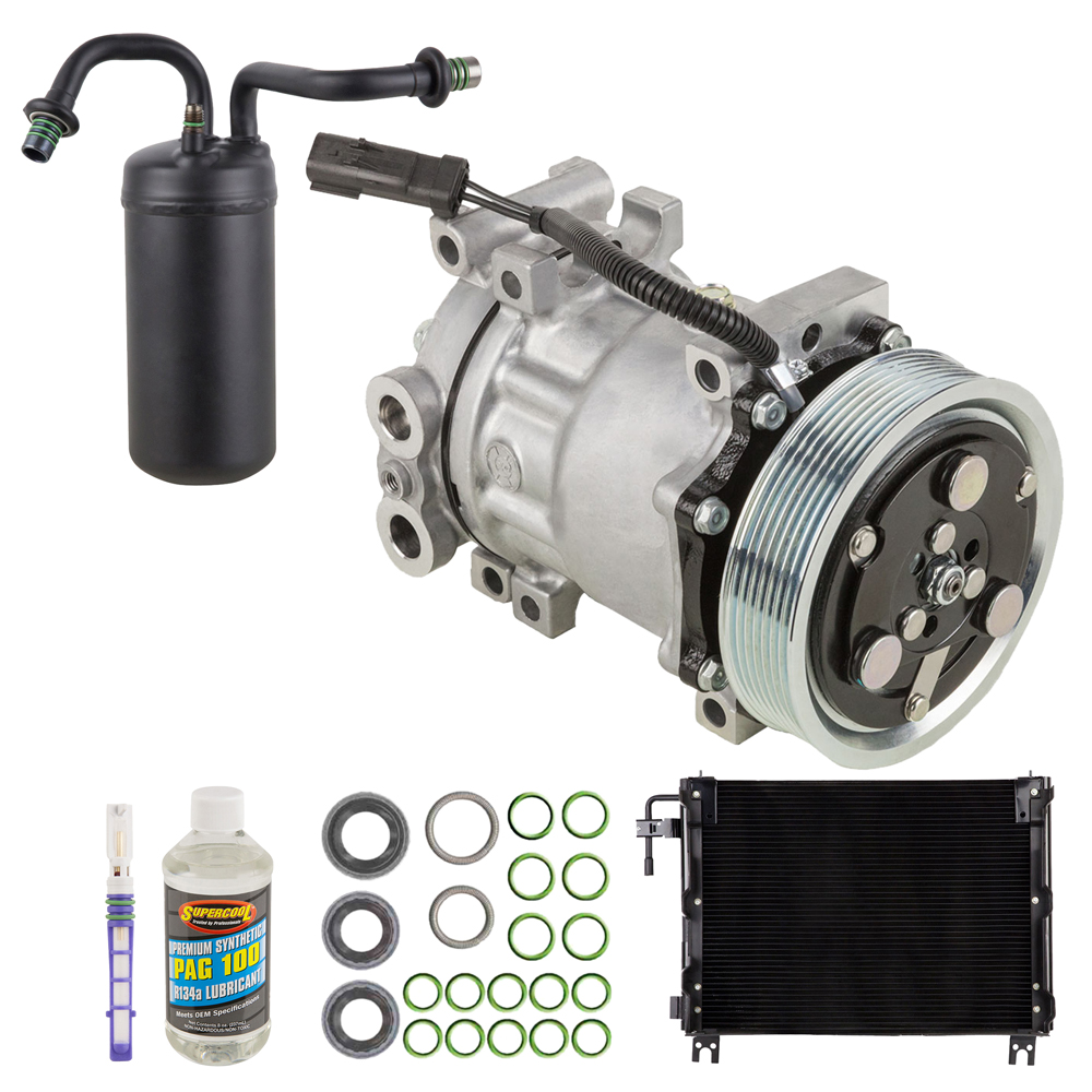 This Premium Installers AC Kit includes a new OEM AC compressor, condenser, accumulator/drier, expansion device, a bottle of AC compressor oil and a pack of the correct o-rings for your system to prevent leaks. This kit is designed to include all of the right parts to make the repair process easier and save you money.