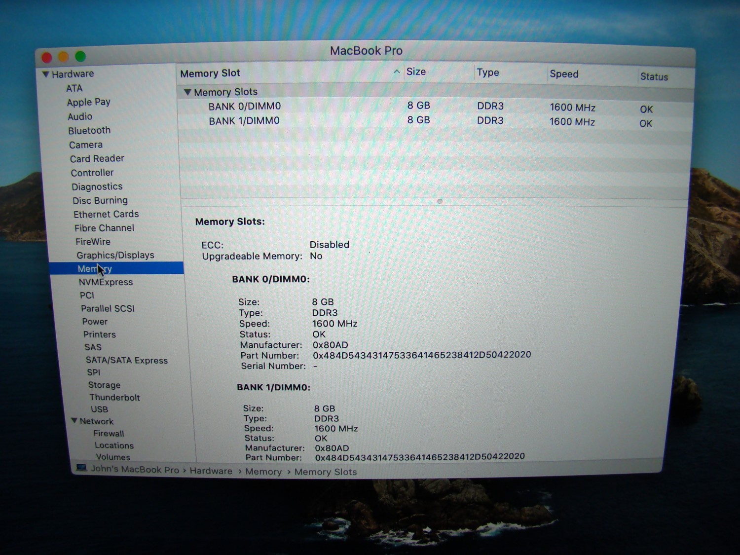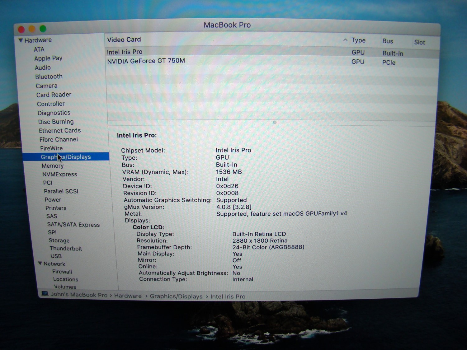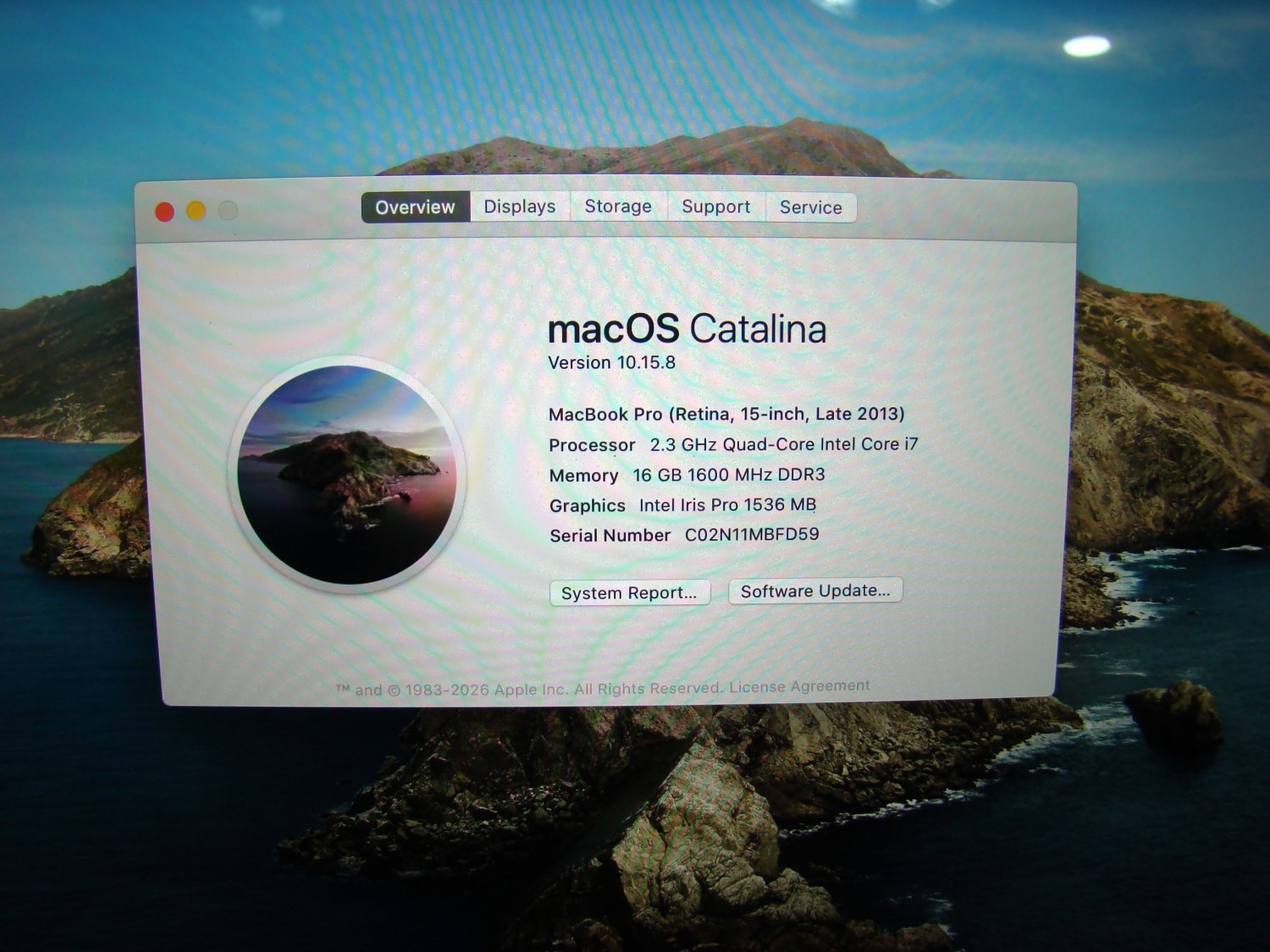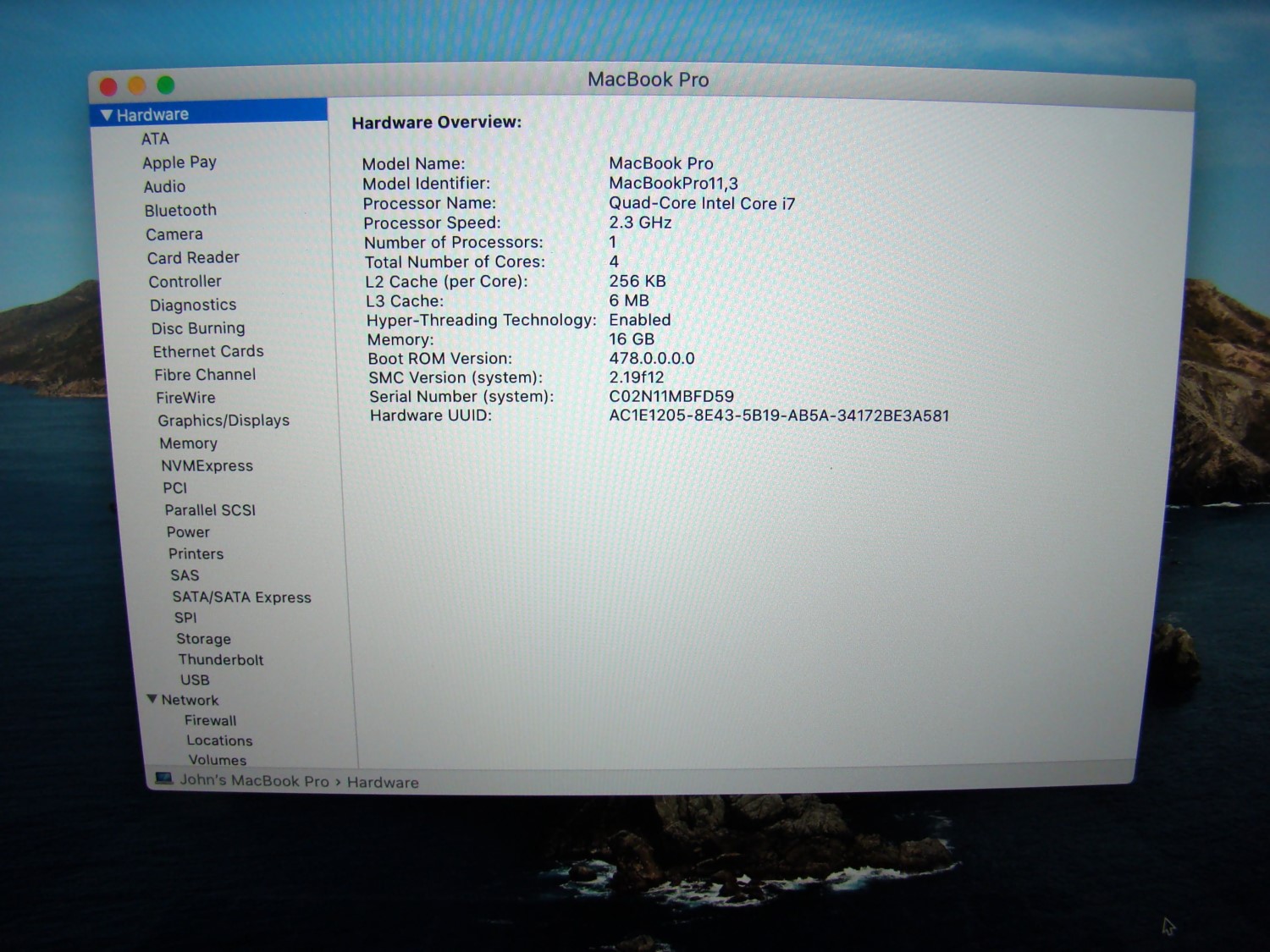 ONE Apple MacBook Pro 15" A1398 Catalina (version 10.15.8) (Quad-Core i7 - 2.3Ghz 16GB RAM - 1TB SSD)
