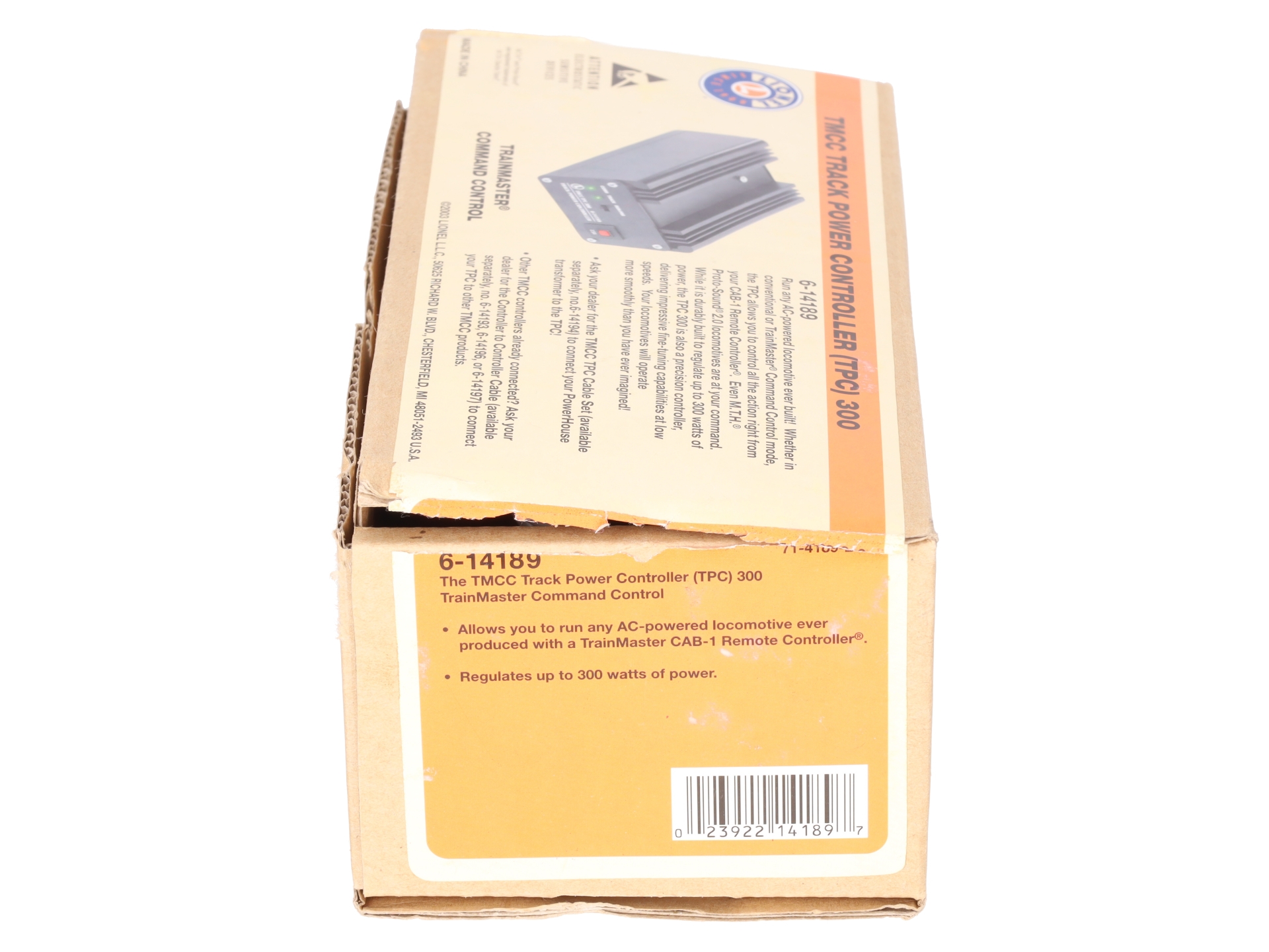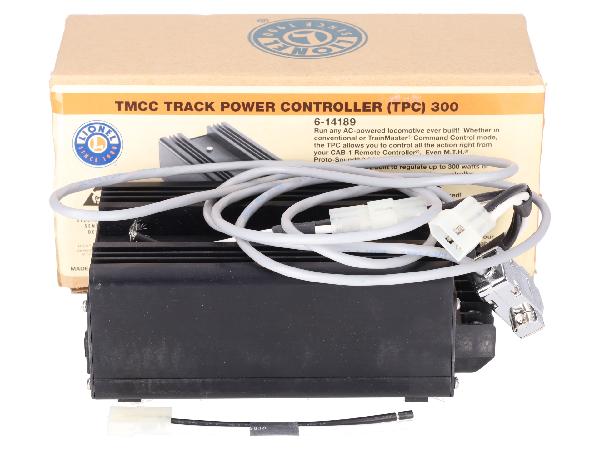 Here is a Lionel 6-14189 TMCC Track Power Controller 300. The TPC allows you to run any AC-powered locomotive ever built! Whether in conventional or TrainMaster Command Control mode, you control all the action right from your remote. Durably built to regulate up to 300 watts of power, the TPC is also a precision controller delivering impressive fine tuning capabilities at low speeds. Your locomotives will operate more smoothly at low speeds than you could have ever imagined! Operates MTH Proto-Sound 2.0 locomotives in conventional mode.