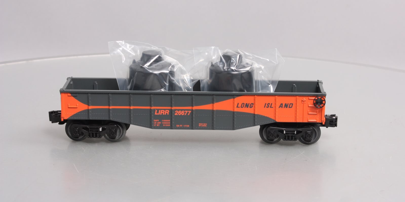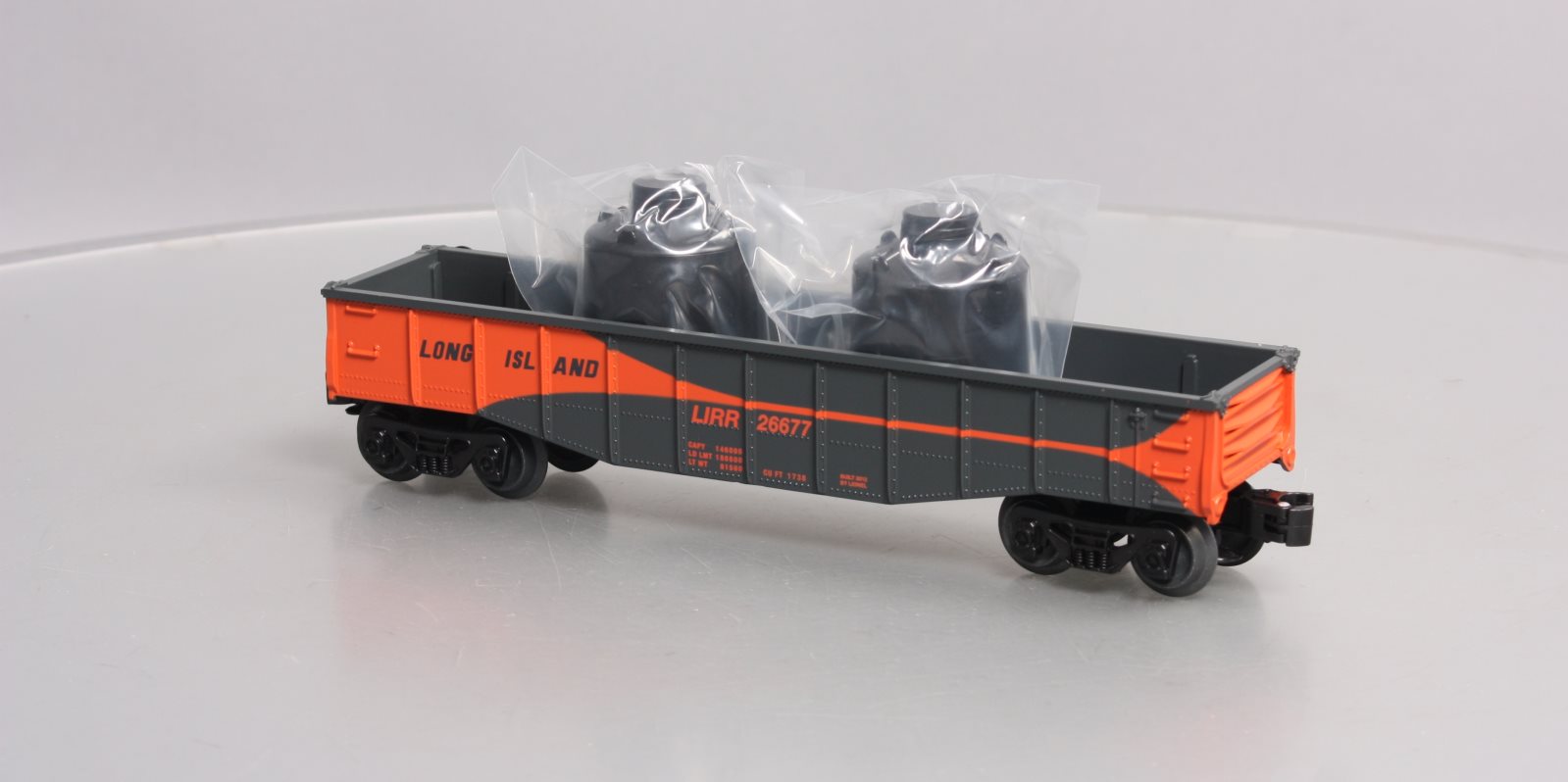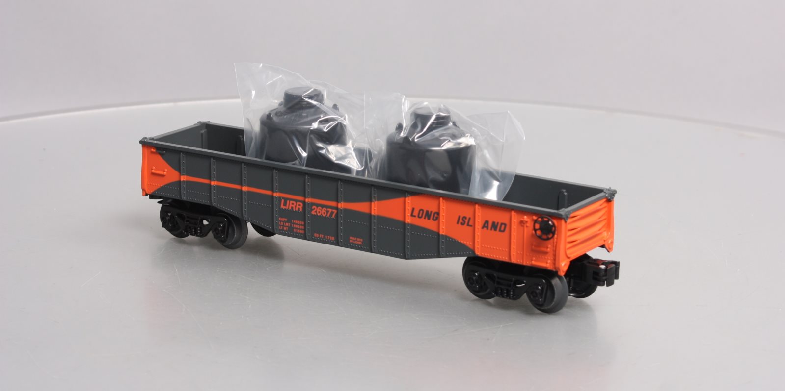 This is Lionel 6-26677 O Long Island RR Gondola w/ Canisters. Long Island Railroad gondola with canisters. Its key features are: