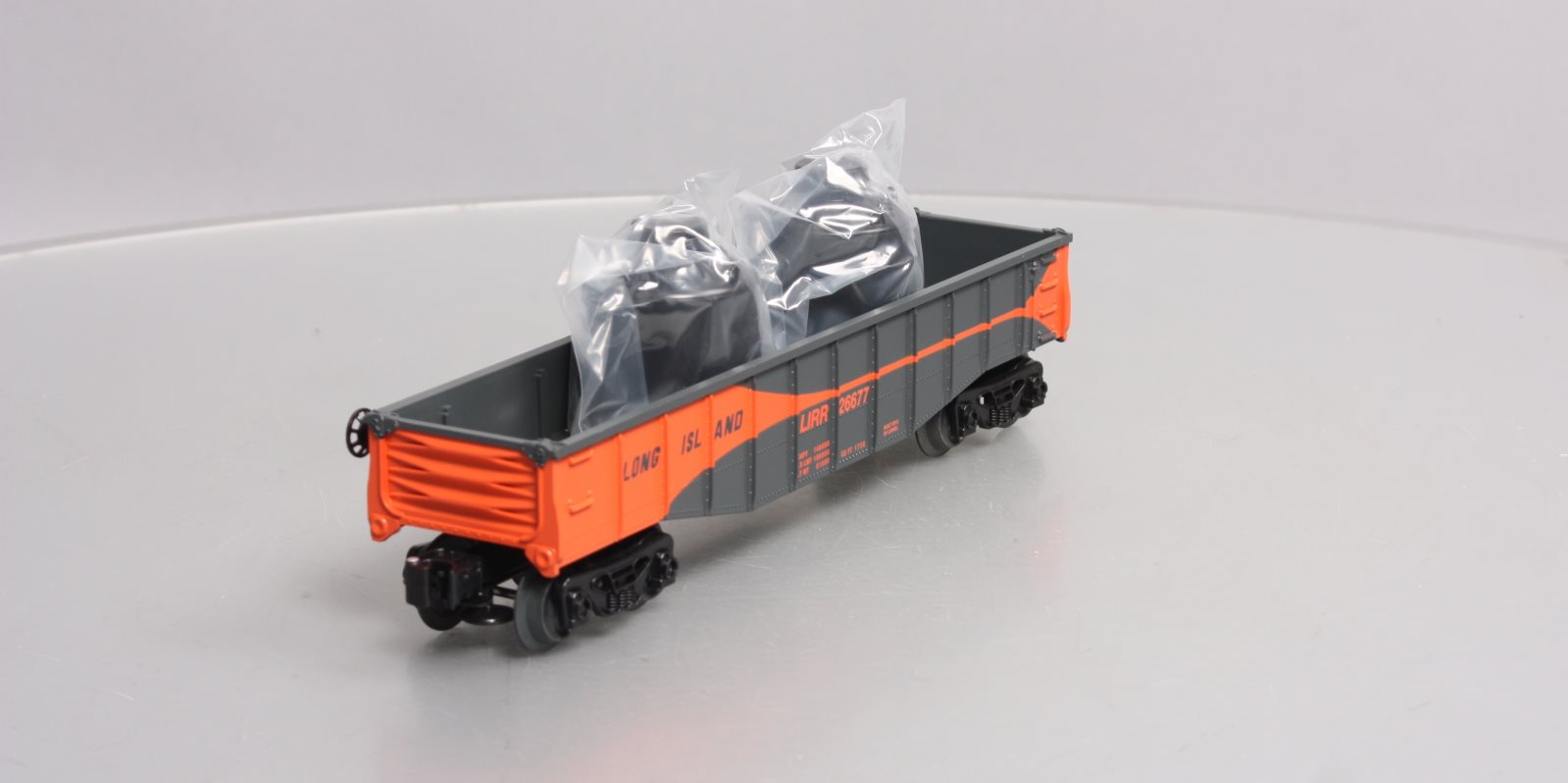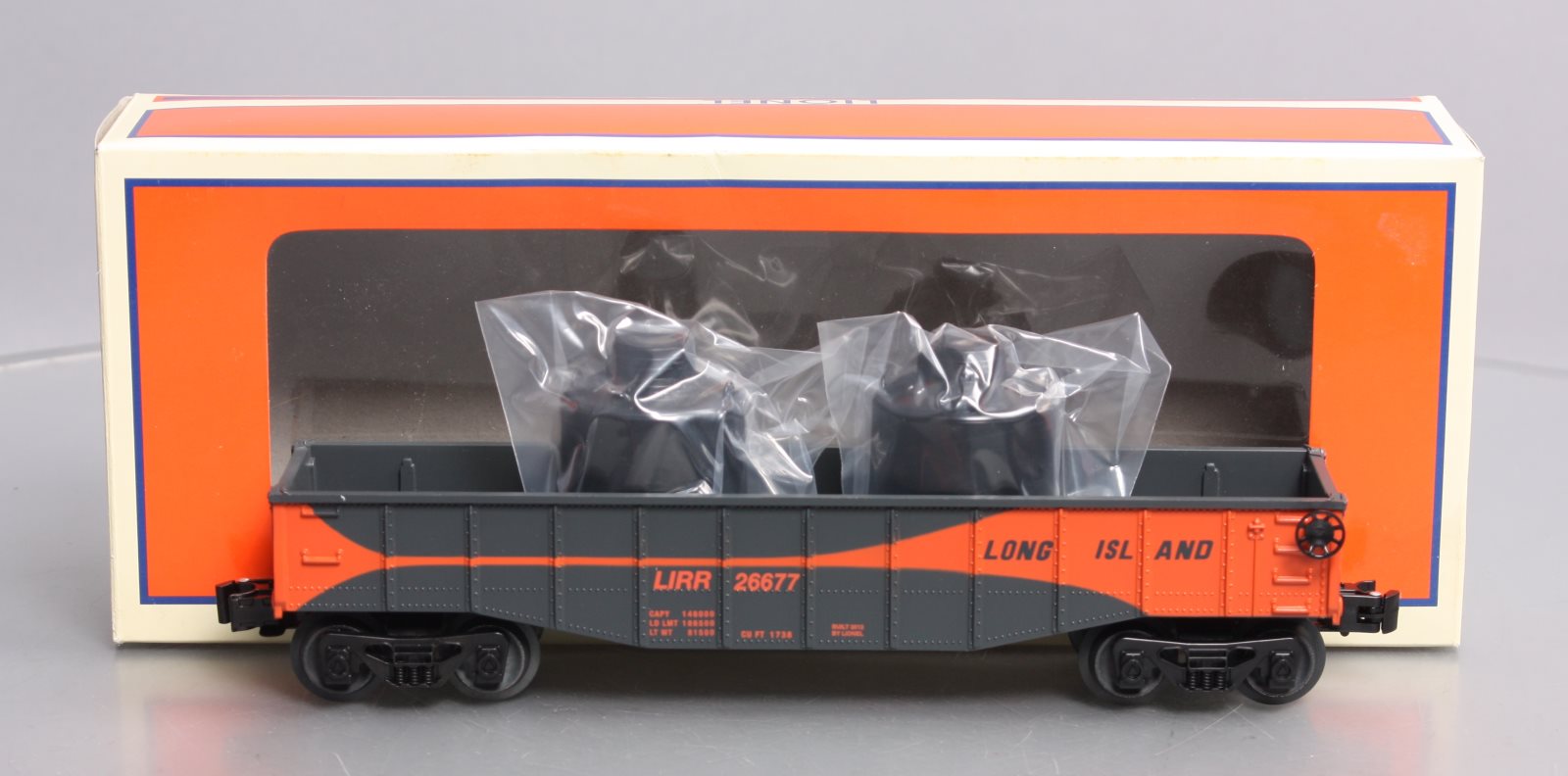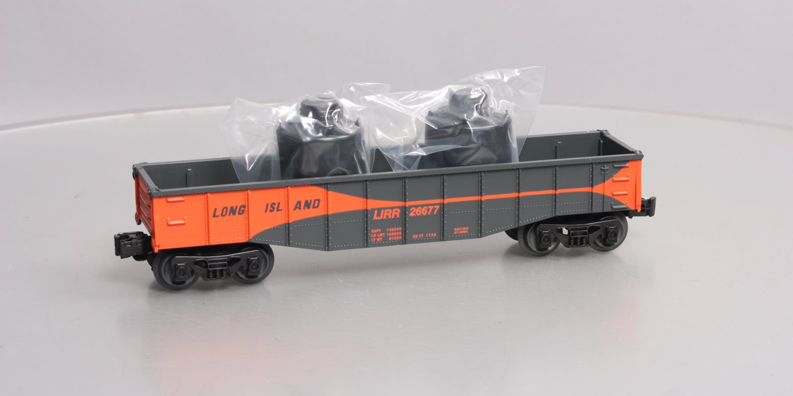 This is Lionel 6-26677 O Long Island RR Gondola w/ Canisters. Long Island Railroad gondola with canisters. Its key features are: