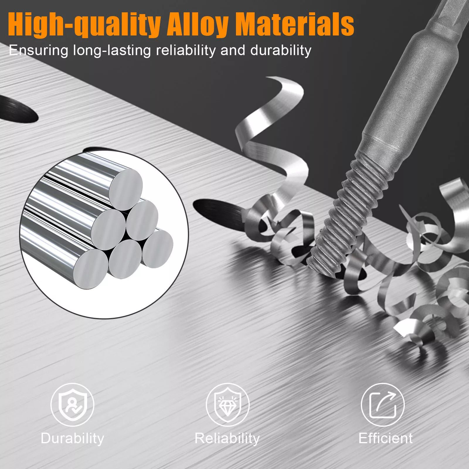 Material: This screw extractor set crafted from high-quality steel materials ensures long-lasting reliability and durability.