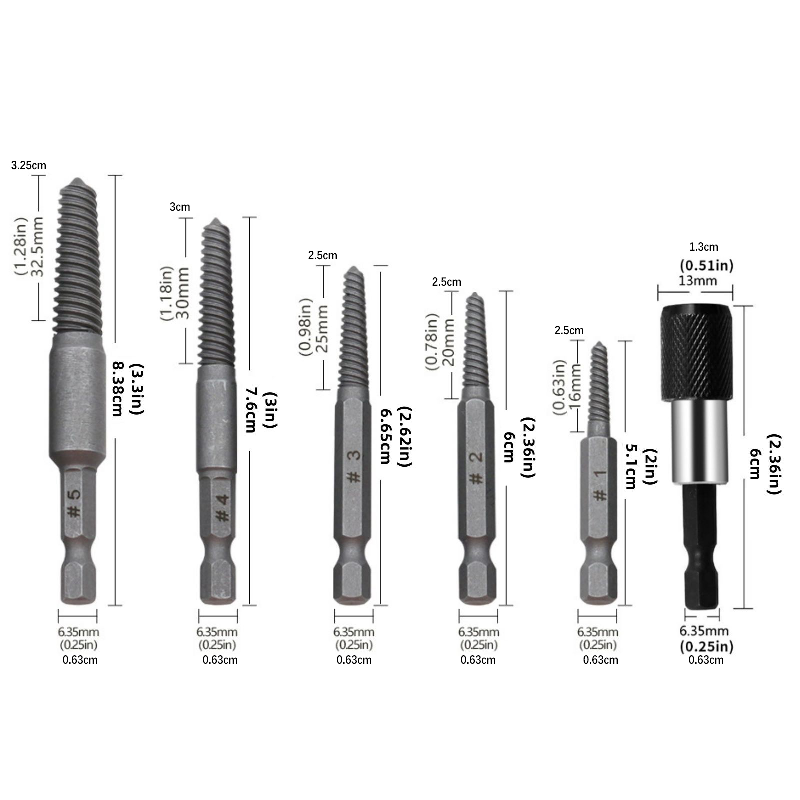 Size: This woodworking hex shank headless screw extractor kit includes 5 different-sized headless screws along with a drill bit extension for added convenience.