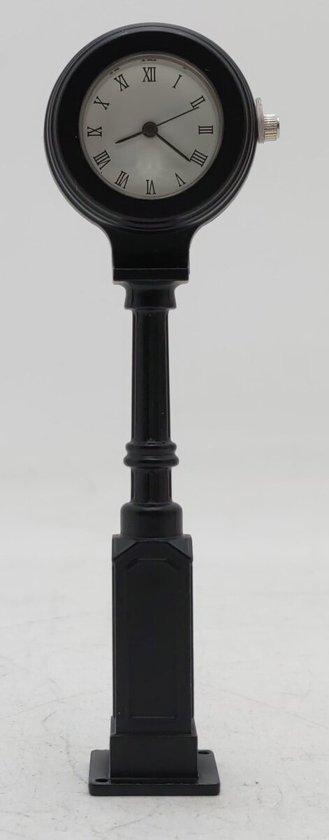 Features: battery powered working clock with metal construction. Turn-of-the-century styling Gauge: Traditional O Gauge Dimensions: 4