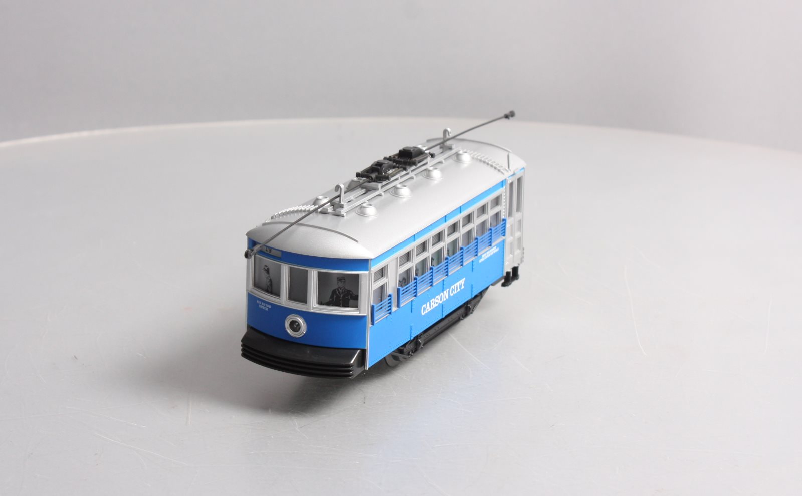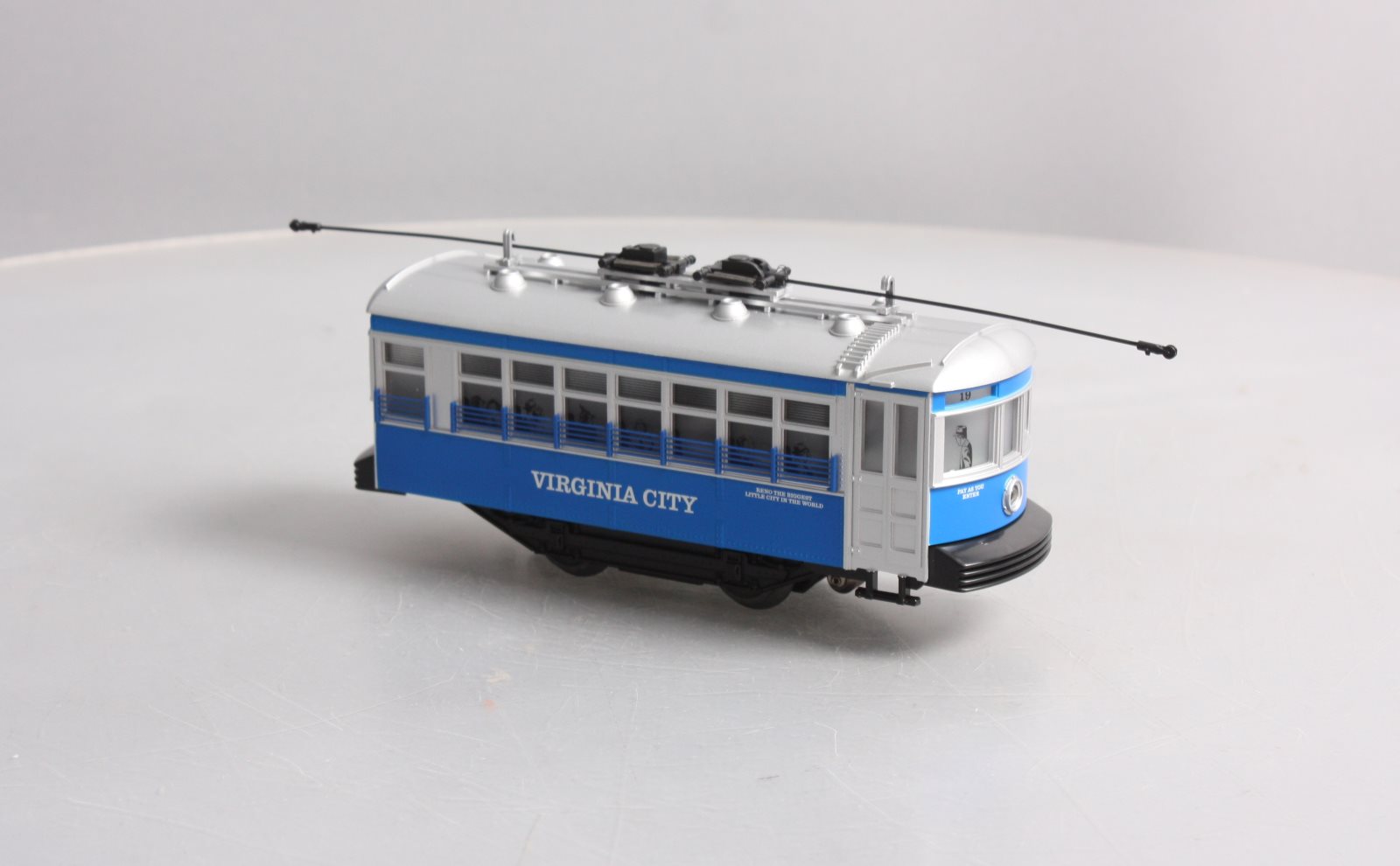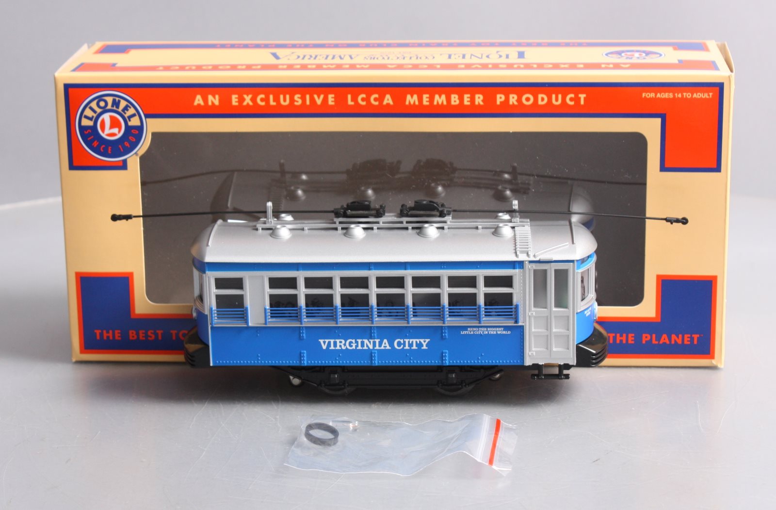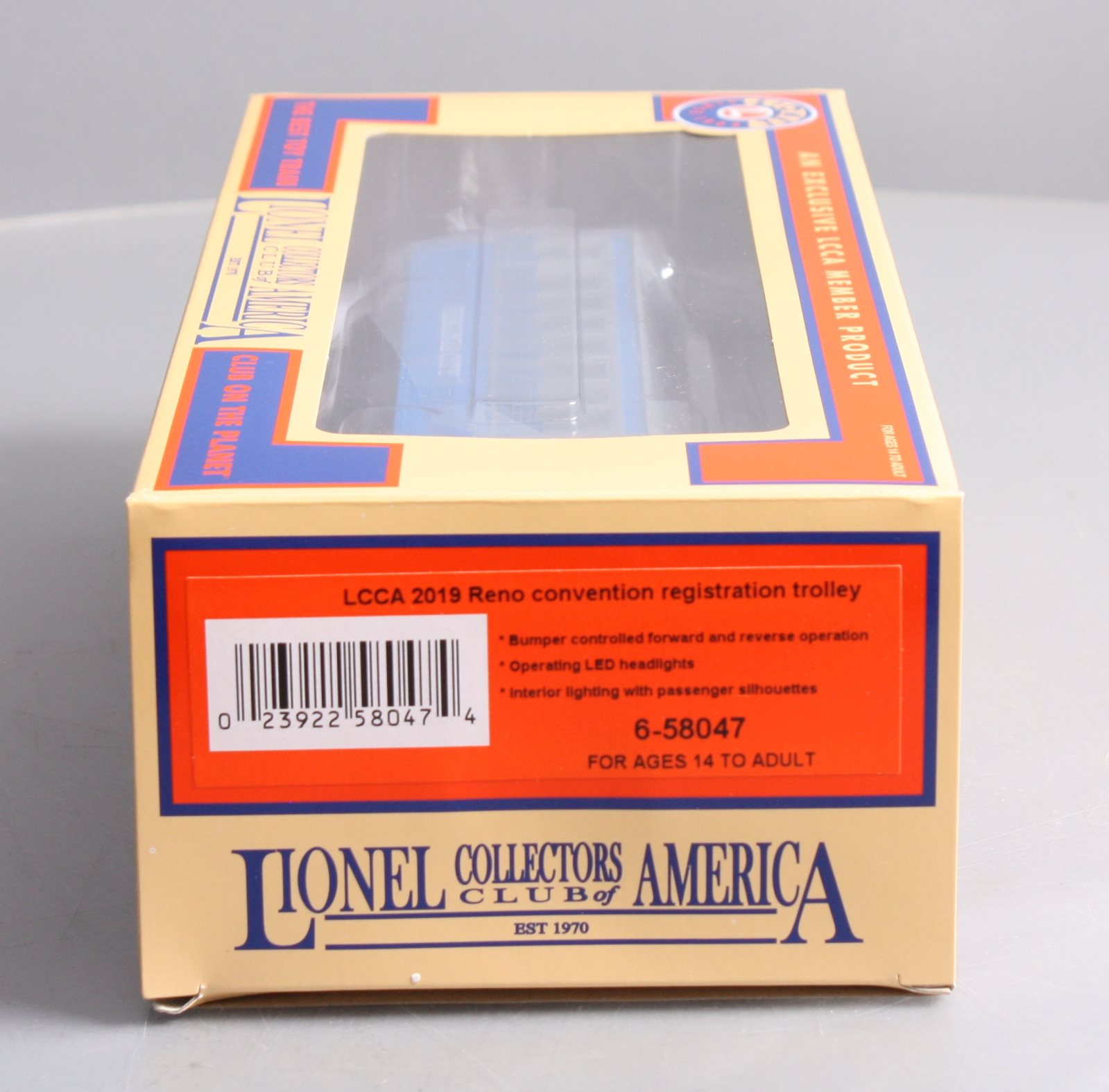 This is a Lionel 6-58047 O LCCA 2019 Reno Convention Registration Trolley. This trolley features both forward and reverse operations, trolley poles, and a motor.