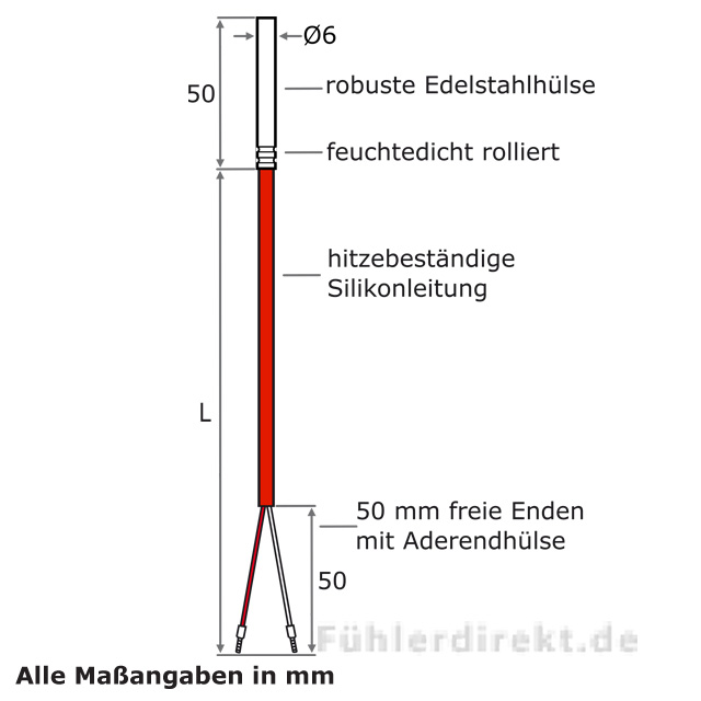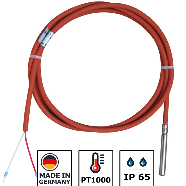 Temperaturfühler mit PT1000 Sensor und Silikon-Leitung.