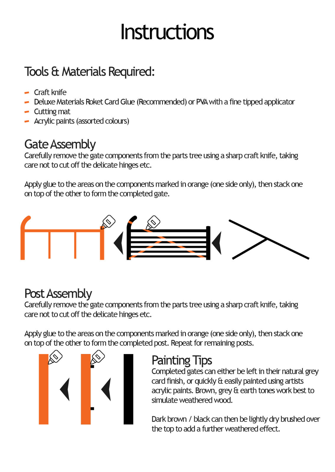 Very realistic model gates, with precision cutting for accuracy and ease of assembly. Just remove the parts from the sheet, apply a little glue and assemble as shown in the instructions. Assembly takes just a couple of minutes for each gate.