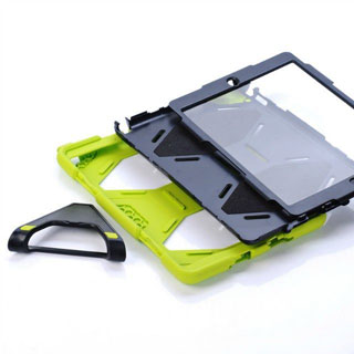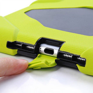 This case protects your tablet against shocks, vibration, dirt, sand and water drops. It has an ultra-tough impact resistant silicone skin that seals all ports and gives full body protection. Tough shatter resistant polycarbonate front panel has built-in heavy duty screen protector that seals your touch screen display from the outside environment. There are two shock absorbing pads built into the polycarbonate back panel to give extra protection to the tablet. The belt clip that comes with the case can also be used as a stand.